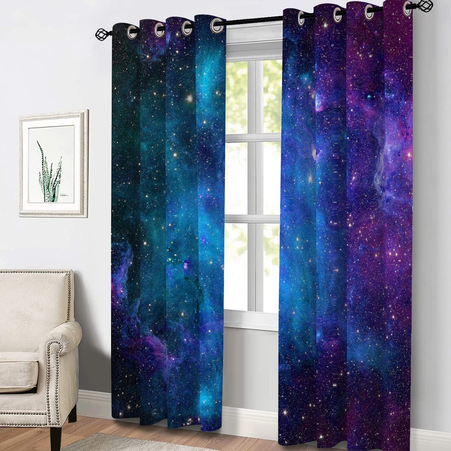 Aimego Galaxy Blackout Curtains Outer Space Universe Nebula Night Starry Window Drapes Decor for Kids Boys Teens Bedroom Living Roomm Grommet Room Darkening Curtains 2 Panel Set, 42"X84"