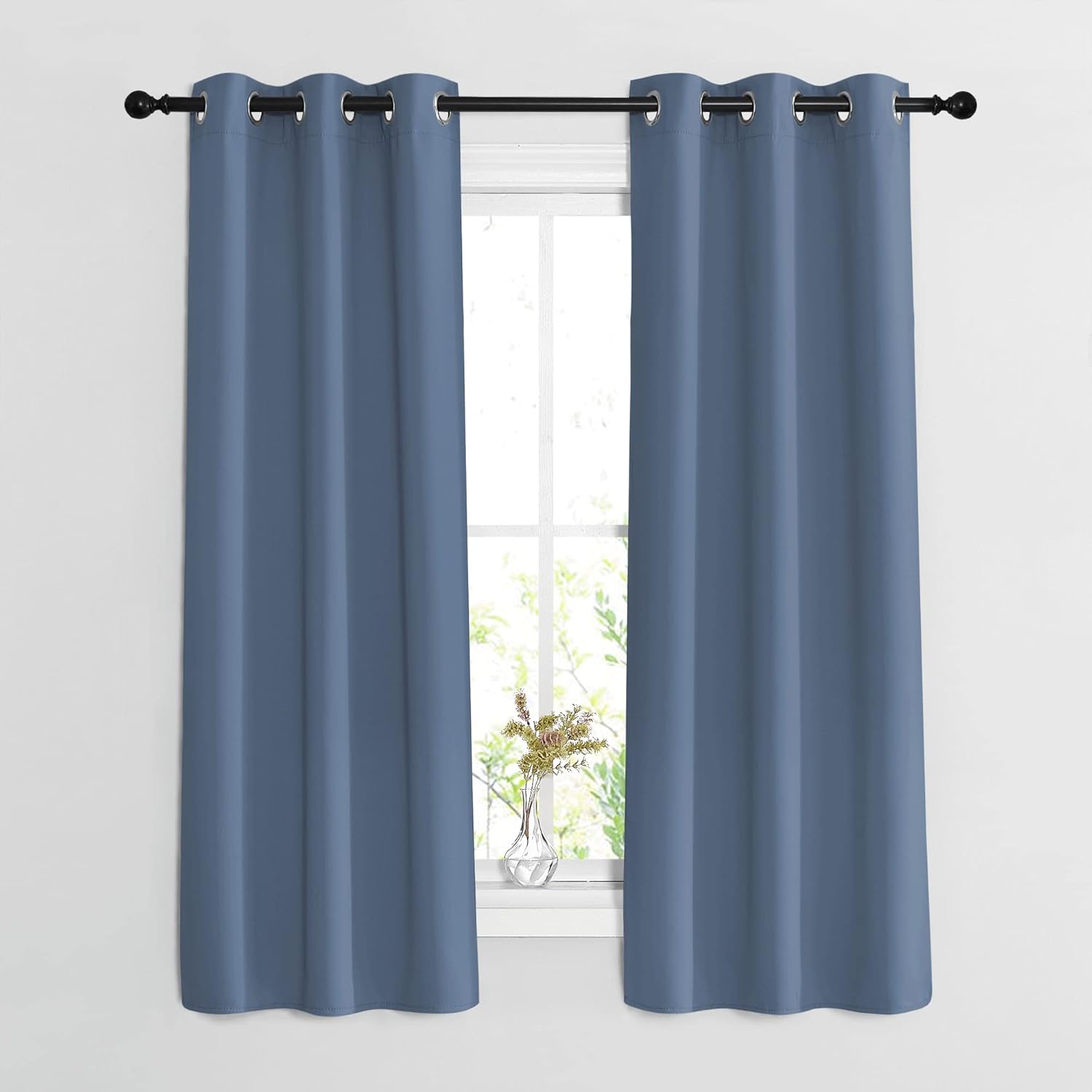 NICETOWN Bedroom Blackout Curtains and Drapes 54 inch Long - Window Treatment Thermal Insulated Solid Grommet Light Blocking for Night Shift (Stone Blue, W37 x L54, 2 Panels)