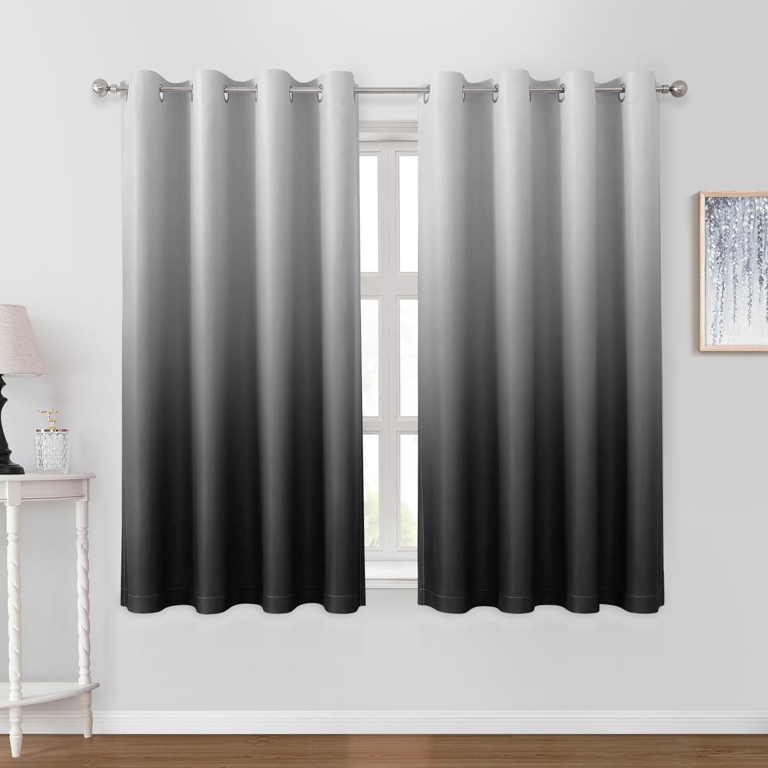 HOMEIDEAS Black Ombre Blackout Curtains 52 X 63 Inch Length Gradient Room Darkening Thermal Insulated Energy Saving Grommet 2 Panels Window Drapes for Living Room, Bedroom