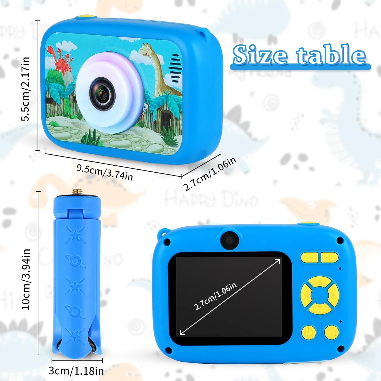 - 【Useful Accessories】Built-in 800mAH lithium battery charging time 1-2 hours, 15 days+ long standby . Package Included:1*Kids Camera, 1*USB Cable, 1*32GB Micro SD Card, 1*Lanyard, 1*User Manual, 1*Stand. This children's digital camera adopts environmentally friendly non-toxic silicone and shockproof ABS Plastic materials. RoHS and CE certified to ensure safe and reliable quality.