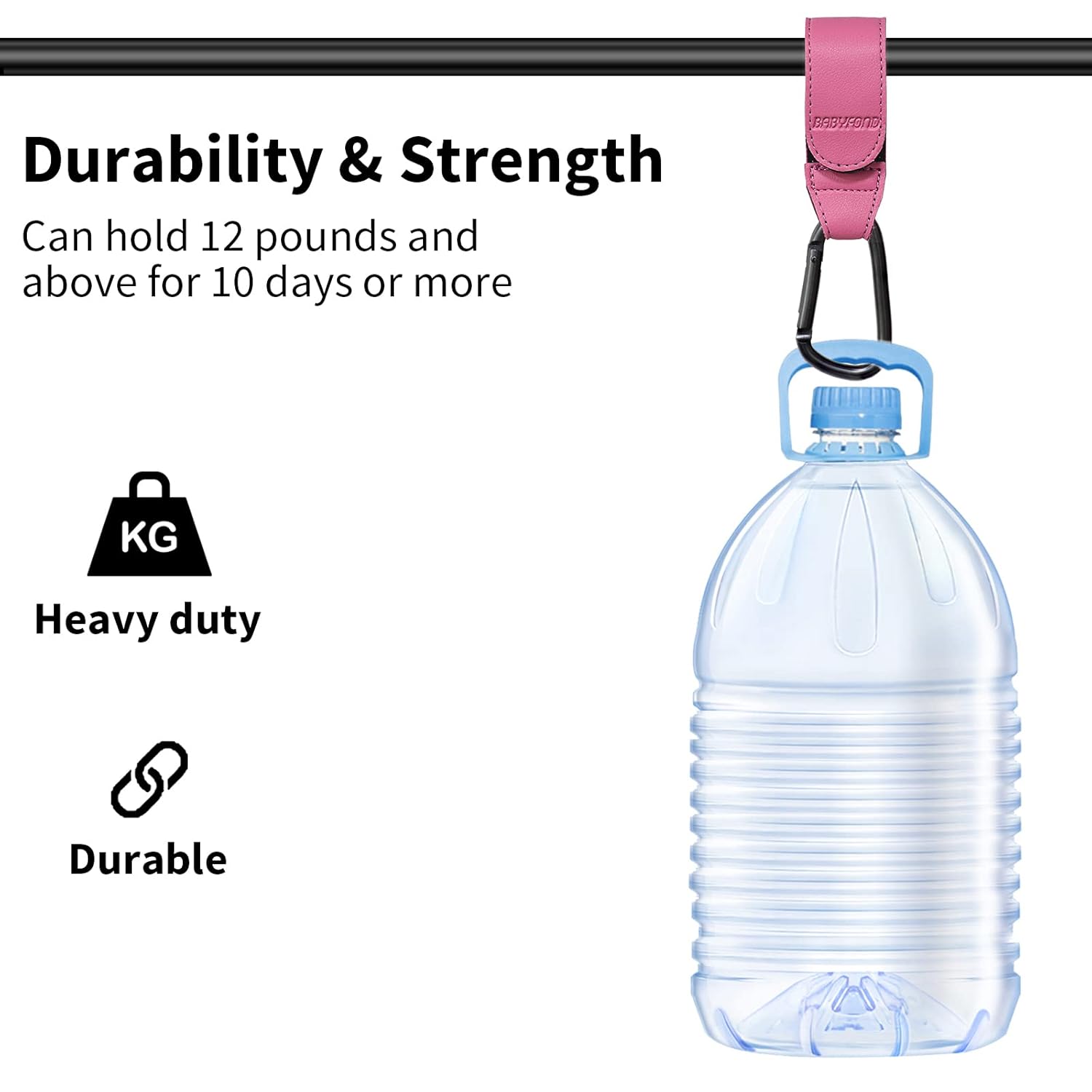 2 Pcs Stroller Hooks for Hanging, Portable Leather Style Stroller Clip Straps, Baby Stroller Hooks for Diaper Bags Grocery Shopping Bags, Mommy Hook for Stroller(Pink)