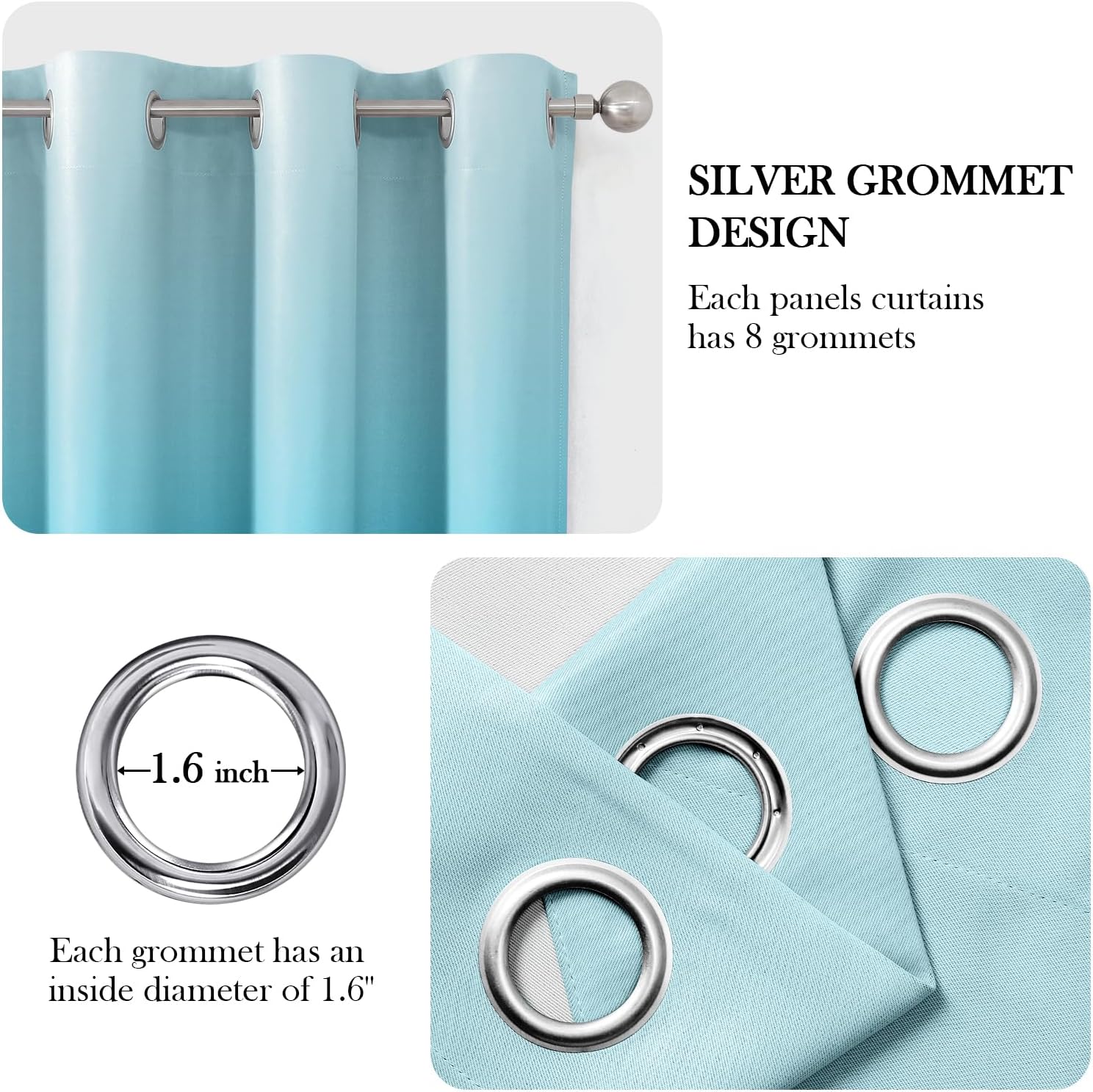 - ★PACKAGE MADE: Your package includes two gradient curtain panels. Each panel measures 52 inches in width, a total width of 104 inches. 8 silvery grommets (1.6-inch inner diameter) of each panel make the blackout curtains easy to install and slide.