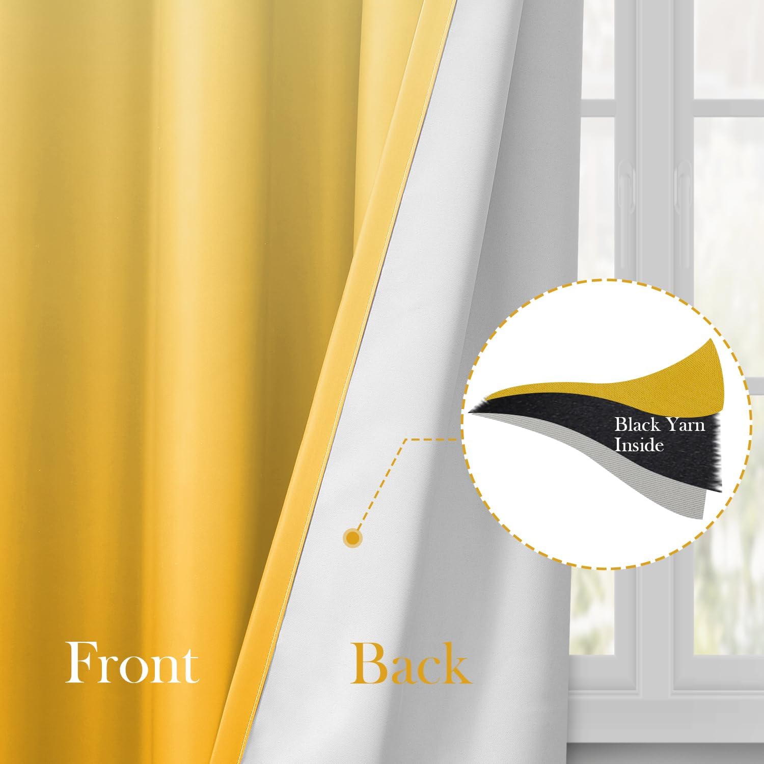 HOMEIDEAS Mustard Yellow Ombre Blackout Curtains 52 X 84 Inch Length Gradient Room Darkening Thermal Insulated Energy Saving Grommet 2 Panels Window Drapes for Living Room, Bedroom