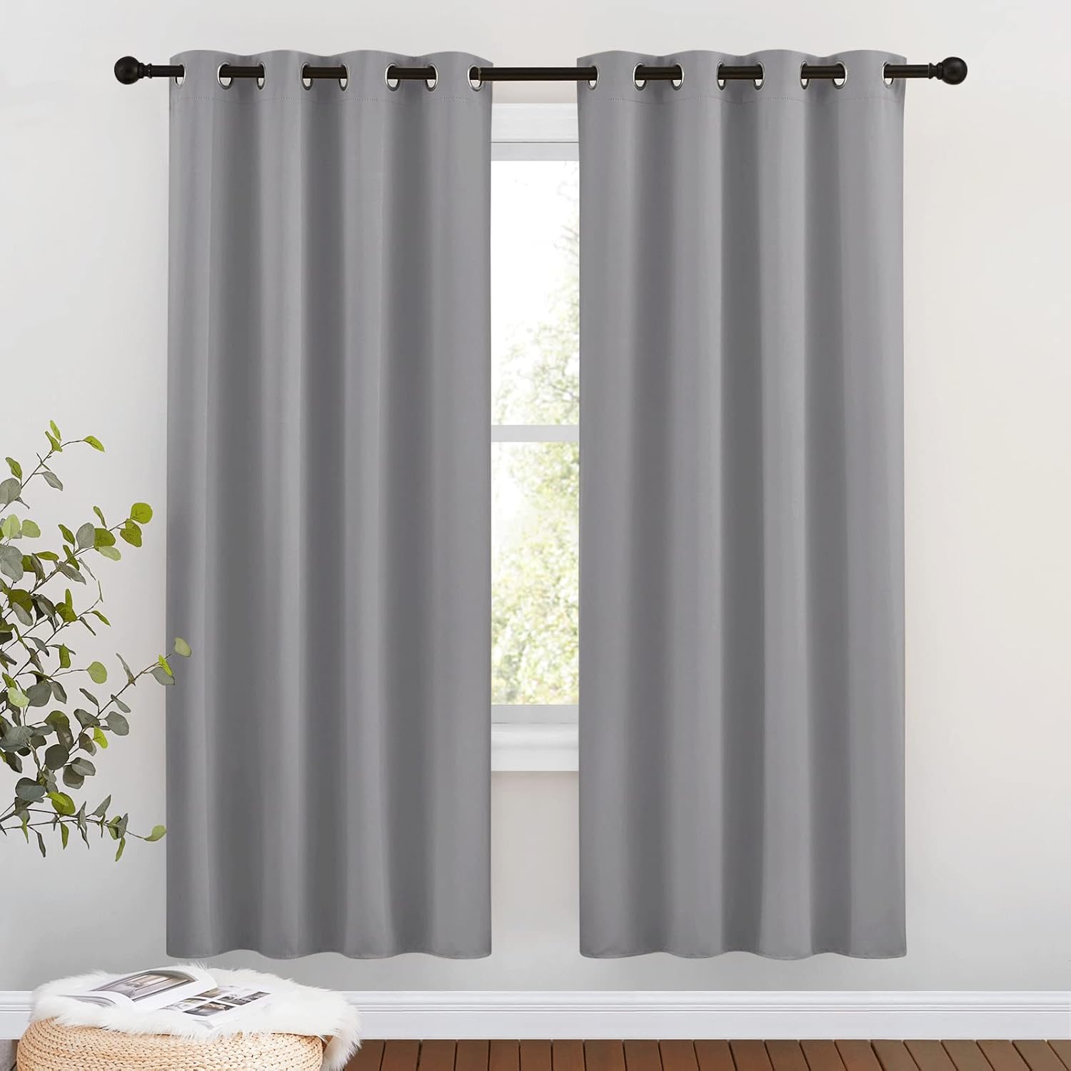 NICETOWN Blackout Window Curtains & Drapes 72" Long - Grommet Top Room Darkening Thermal Insulated for Bedroom/Living Room (2 Panels, 46 x 72 Inch, Silver Grey)
