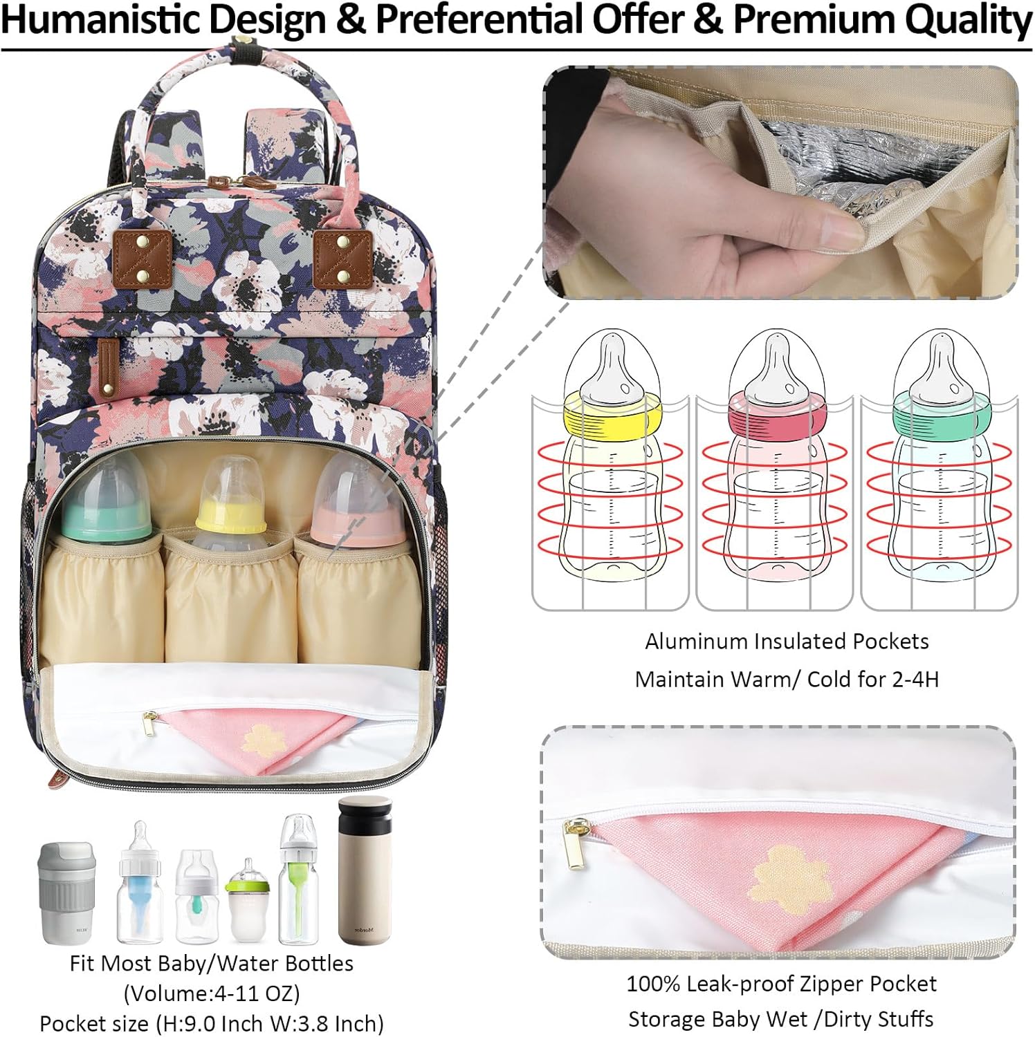 Diaper Bag Backpack Tote for Women Large Capacity, Multifunctional Waterproof Baby Bag with Insulated Pockets For Baby Girl Boy Mama, Maternity Bag Floral Painting