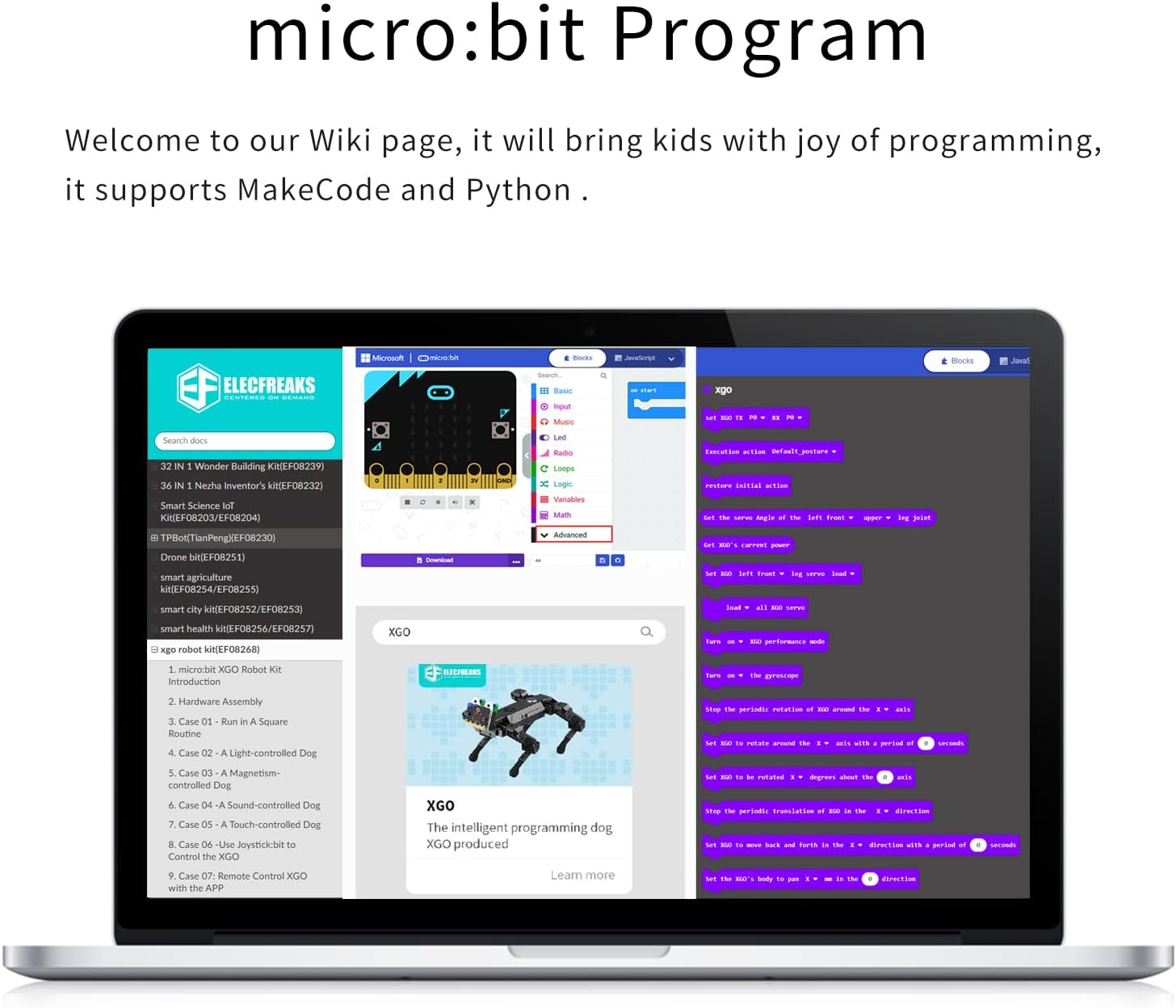 - 【Artificial Intelligence Gift for Maker】If you are a maker player and interested in expansion, the microbit XGO head can be replaced with arduino and raspberry pi to connection. you can also research and connect with expansion boards and sensors, such as AI cameras, voice recognition sensors,etc.The robotic dog will be applied to more scenes, DIY more novel and interesting forms.