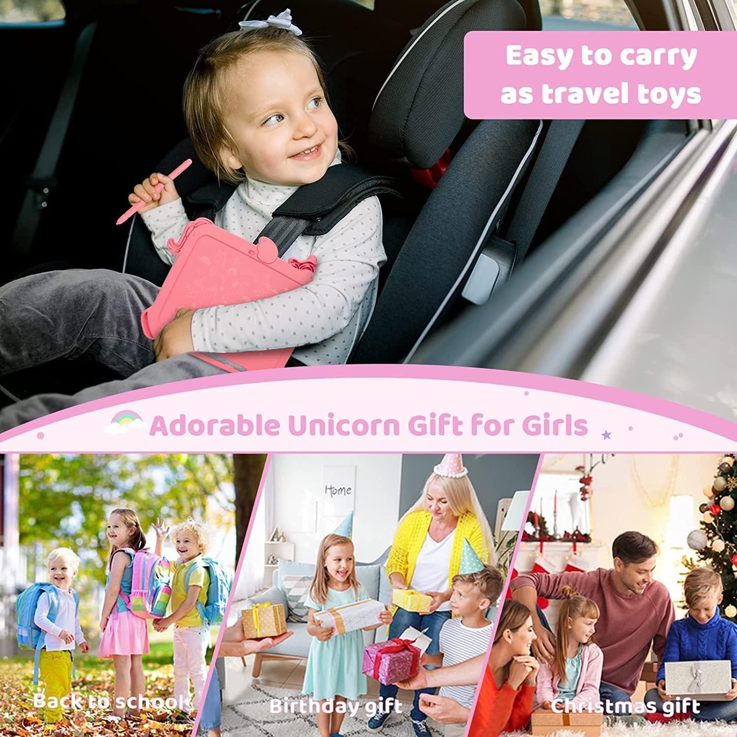 - Spark Creativity with Magical Unicorn Fun! Watch your child (ages 3-7) light up with our enchanting unicorn drawing tablet! They can doodle and draw freely, keeping your walls, floors, and furniture clean. Super lightweight and portable, it's perfect for car rides, restaurants, or playdates. Hours of mess-free artistic engagement await!
