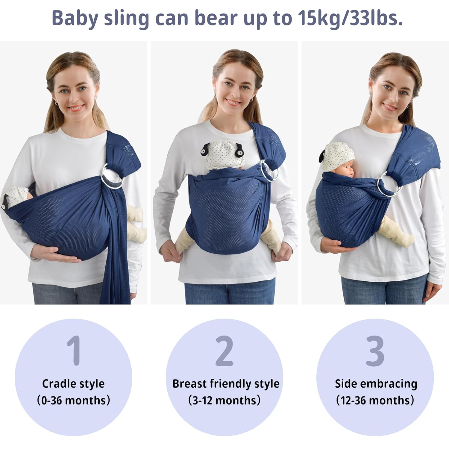 - Breathable for Baby:Our baby sling is made of 100% polyester. Summer special mesh fabric, breathable, quick-drying, not stuffy sweat, let the baby free to breathe fresh air! All variants available in size 200x70 cm. Ideal for premature baby, newborns and babies, can hold up to 15 kg(33bl).