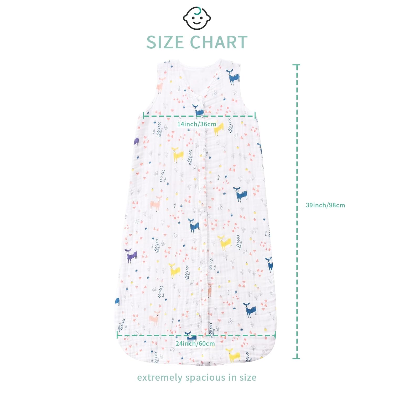 - Premium Organic Cotton Comfort: Experience the luxurious softness of our 100% organic cotton muslin sleep sack. With four layers of breathable fabric, this 0.5 TOG rated garment (ideal for 69-79°F / 20-26°C) ensures optimal temperature regulation year-round. The superior breathability of muslin promotes restful sleep, making it the perfect choice for your toddler's comfort