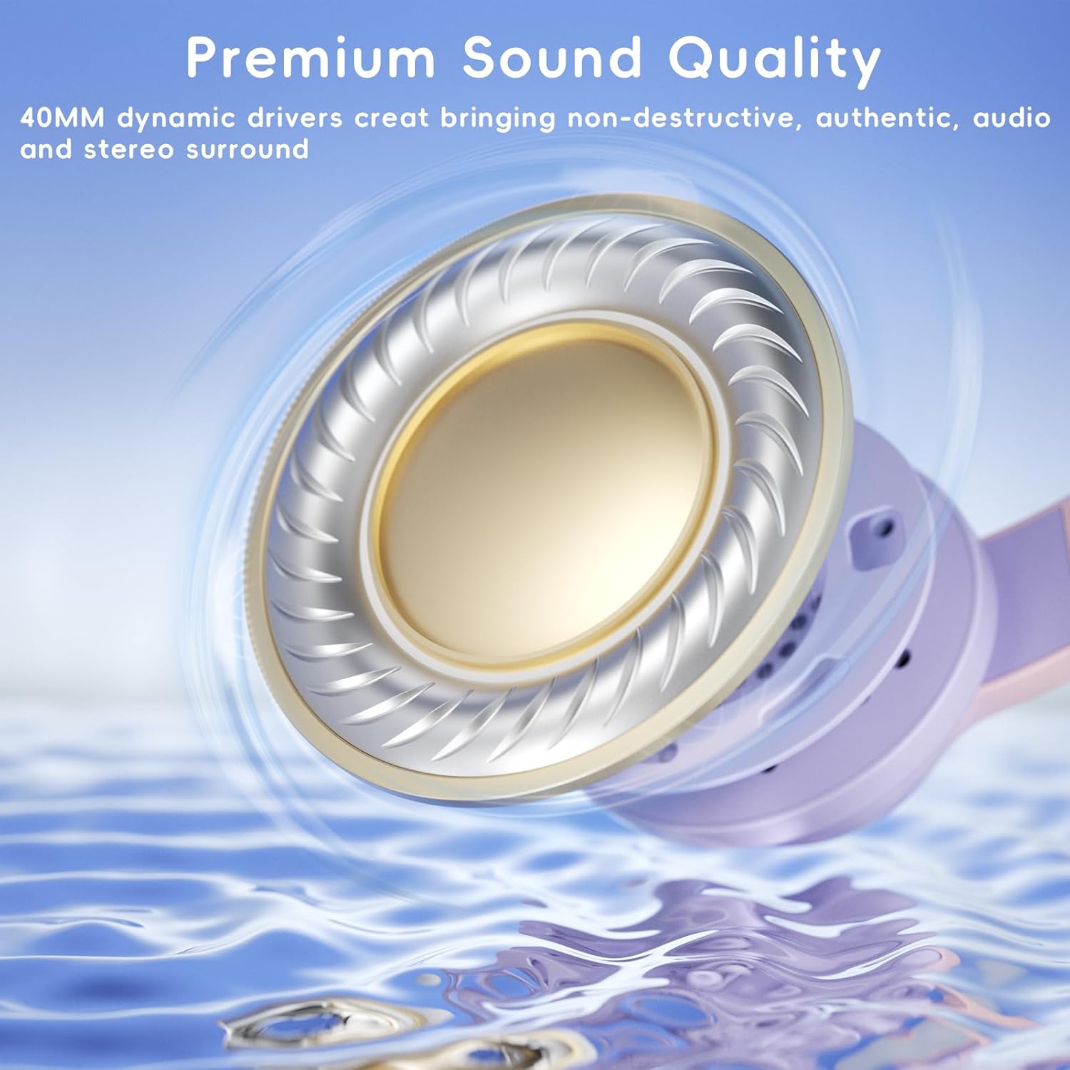 Kids Headphones, Wired Headphones for Kids Over Ear with Microphone, 85/94dB Volume Limiter Headphone for Girls Boys, Foldable Headphone for Learning & Entertainment, Gradient Pink