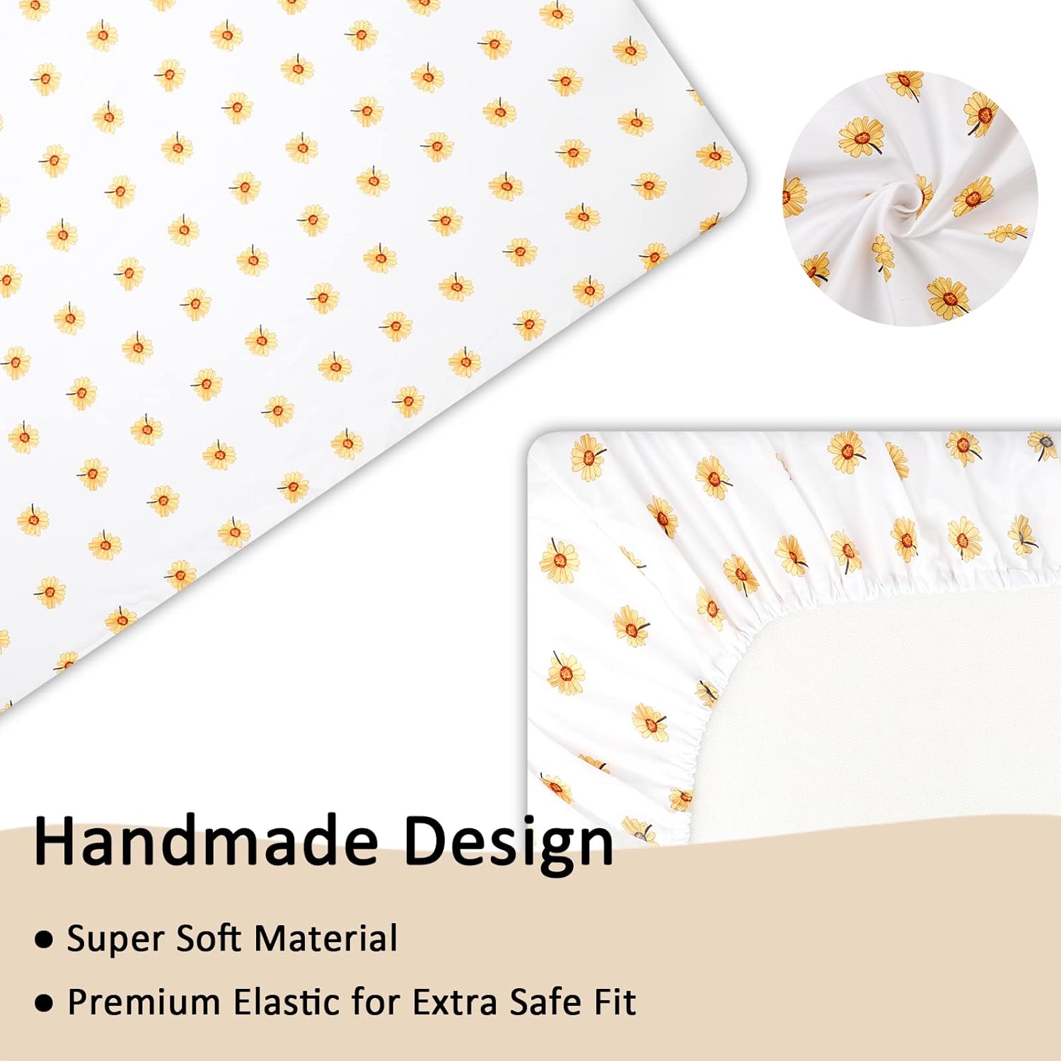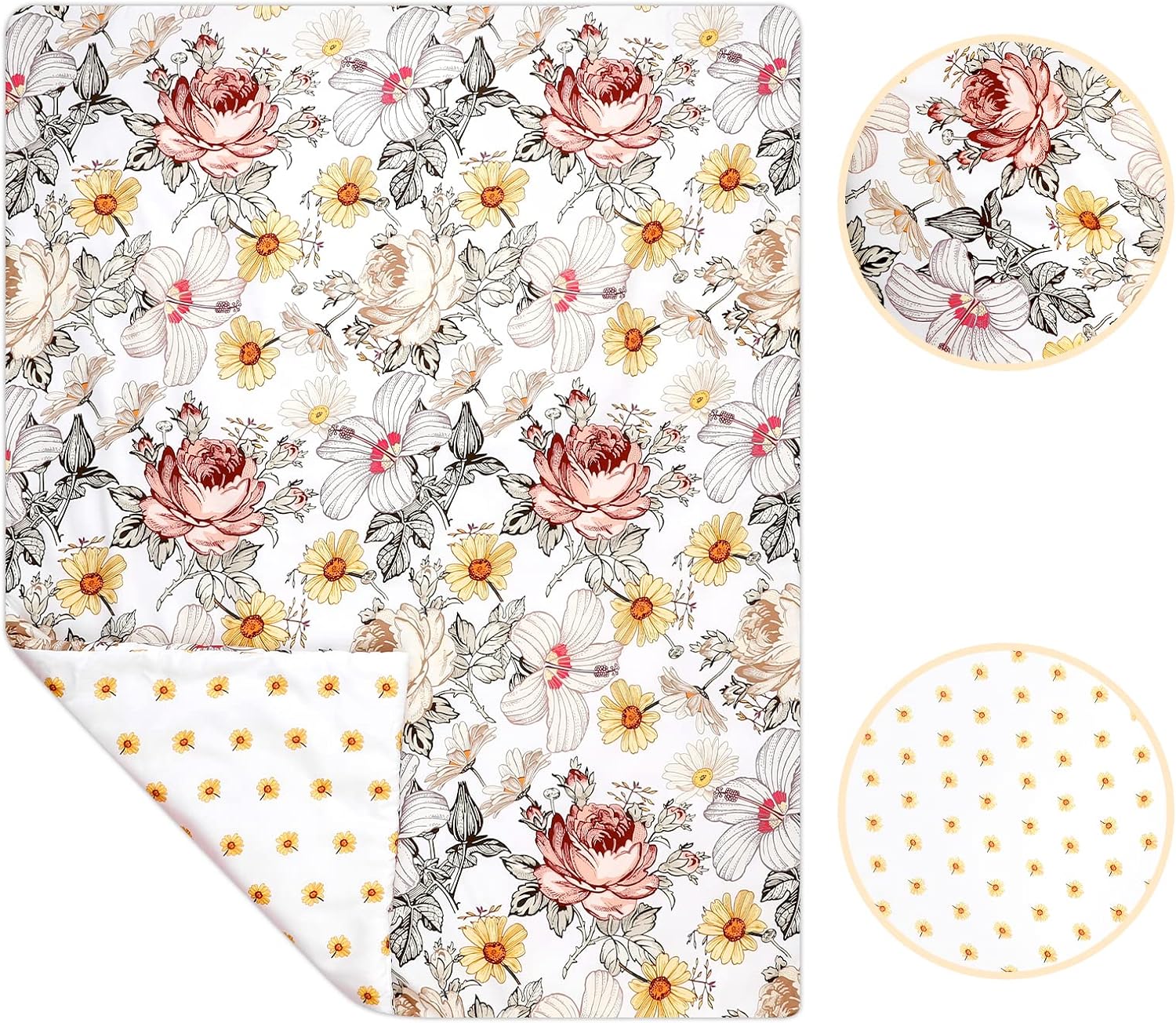 4-Piece Crib Bedding Set for Girls, Boho Baby Girl Bedding Set with Crib Skirt, Baby Quilt, Crib Sheet and Diaper Stacker, Flower