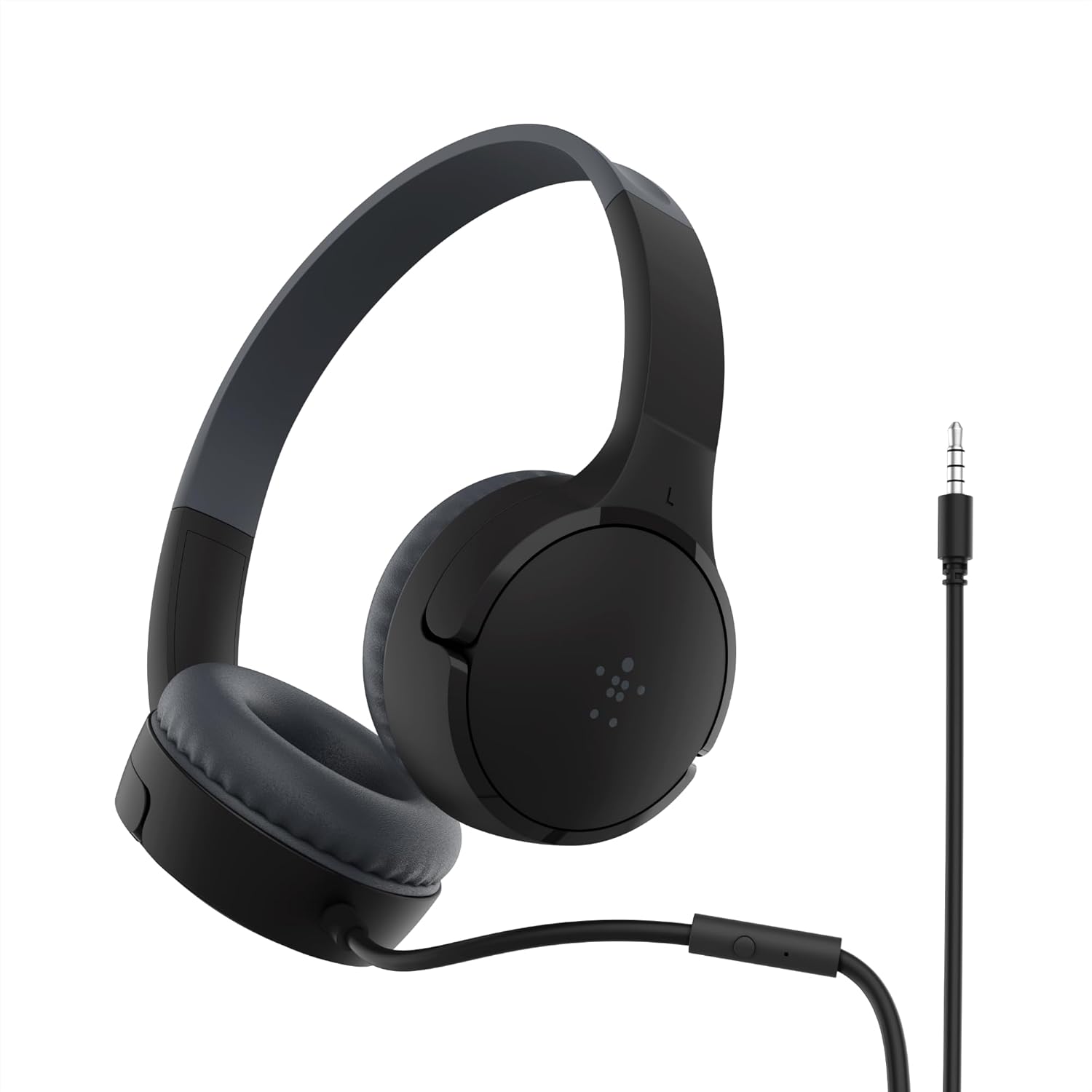 - BUILT-IN MICROPHONE & SAFE SOUND: The wire has a built-in microphone for video and phone calls. And with Belkin Signature Sound with audio tuned specifically for kids, this headphone set has an 85dB volume limiter to protect your little one's ears.