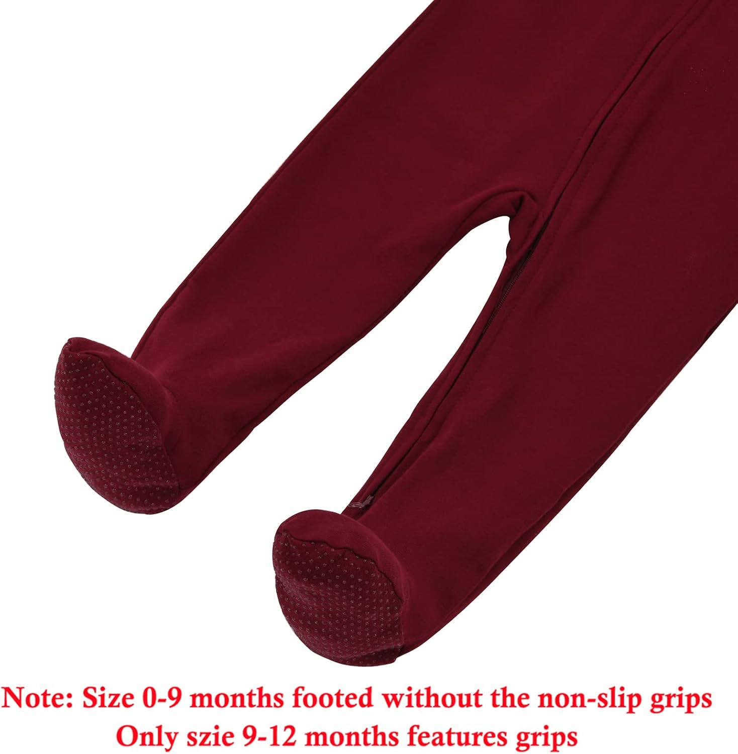 • 【Built-in Mittens and Footed】All sizes design with reversible mitten hand covers to prevent baby from scratching themselves. This 9-12 months baby footie pjs features grip on the feet for extra stability. Great for little baby on the move(0-9 months size without non-slip grips)