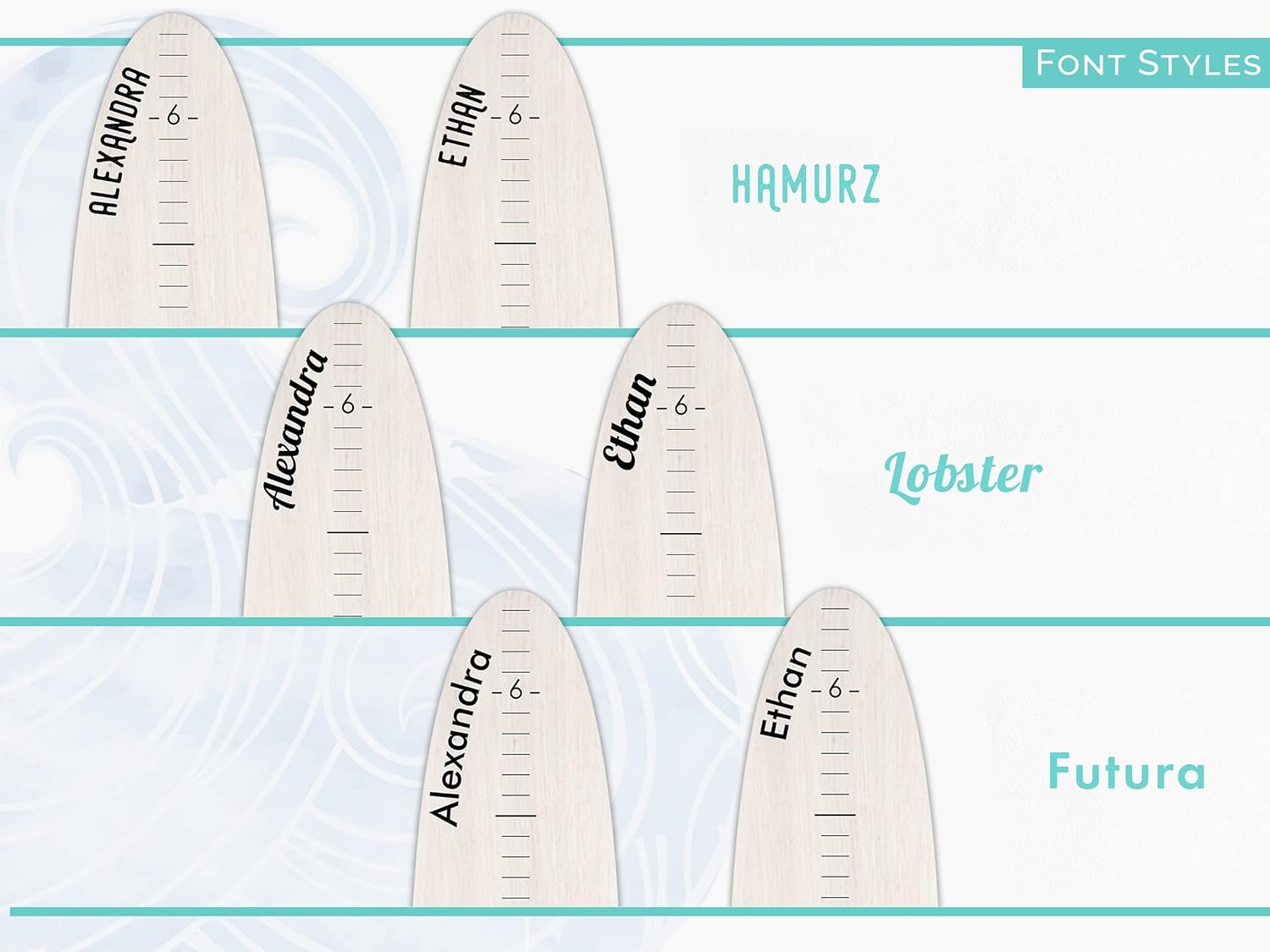 - IDEAL SIZE AND UNIQUE DESIGN: Measuring 57” long and 10.5” wide, our surfboard-style charts can measure heights up to 6'5". Ideal for ocean lovers, these height measurement for wall charts are great keepsakes for tracking your child's growth and milestones. Enhance your surfboard decor with this unique piece.