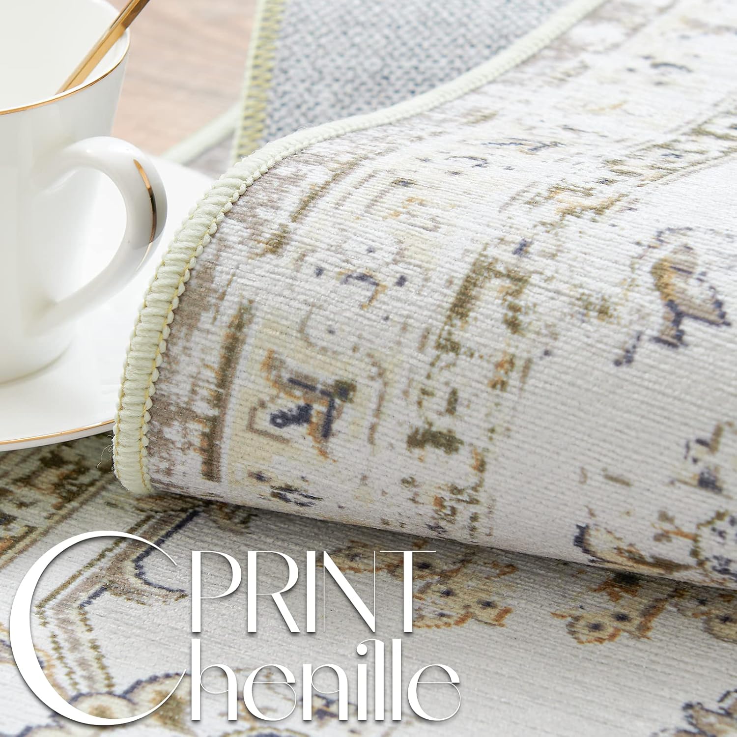 jinchan Hallway Runner Rug 3x7 Machine Washable Runner Rug Taupe Vintage Floral Design Non-Slip Low Pile Ultra-Thin for Kitchen Laundry Room Bedroom Farmhouse (3‘x7',Taupe)