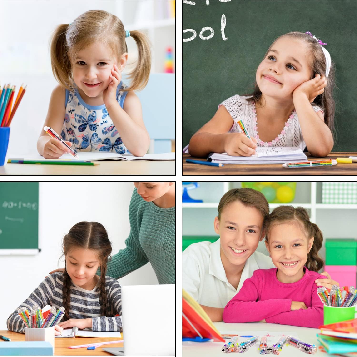 DAIKOYE Party Favors 8 PCS 0.5mm 6-in-1 Multicolor Pen 6 Colors Transparent Barrel Ballpoint Pen for Office School Supplies Students Children Gift