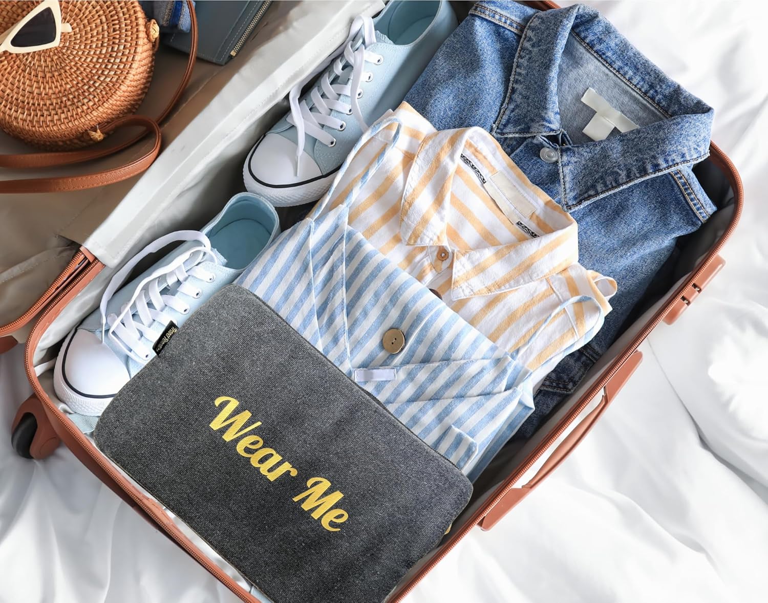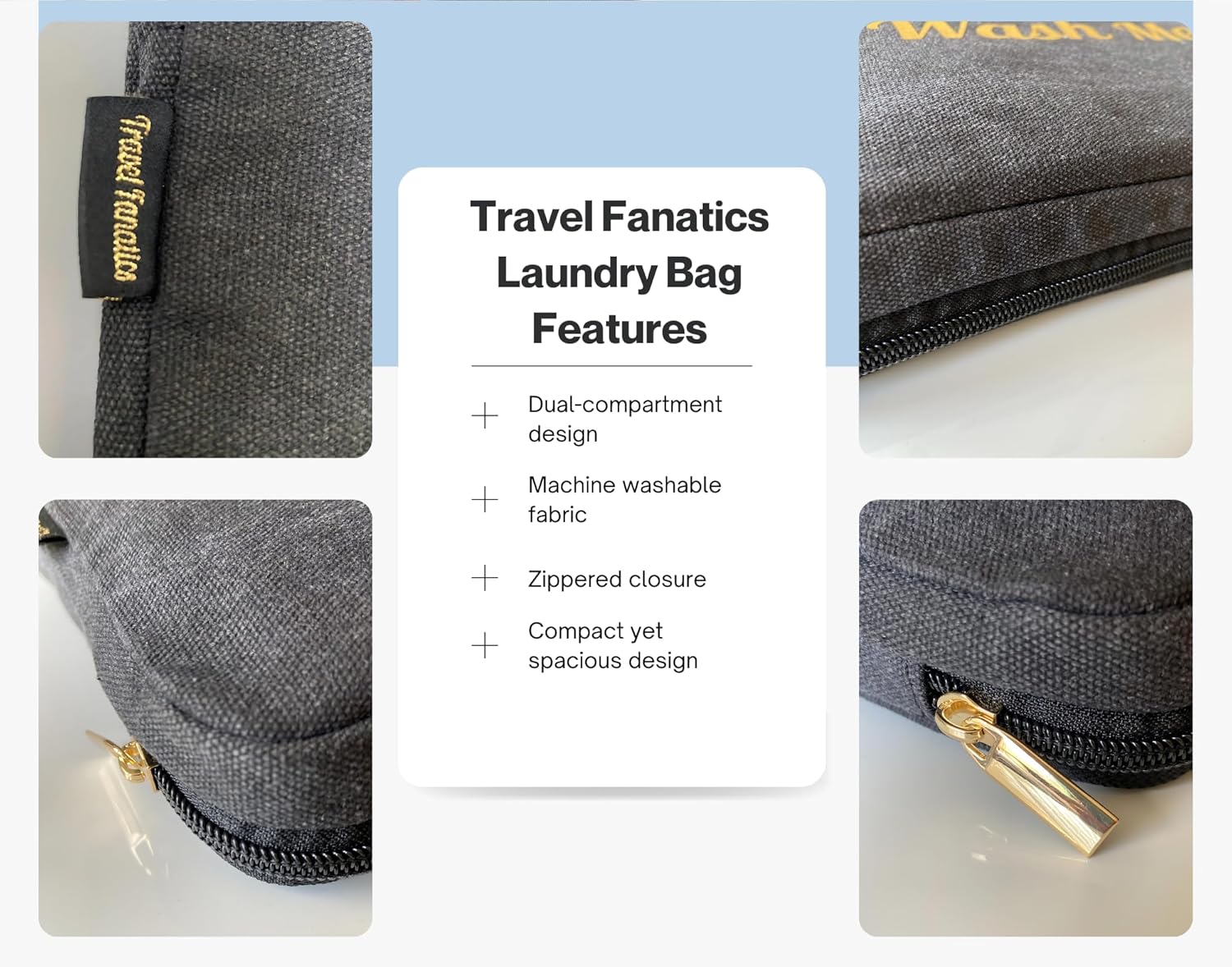 - Wear Me, Wash Me Travel Laundry Bag – Features two compartments labeled "Wear Me" and "Wash Me" to easily separate clean and dirty clothes, perfect for organized travel.