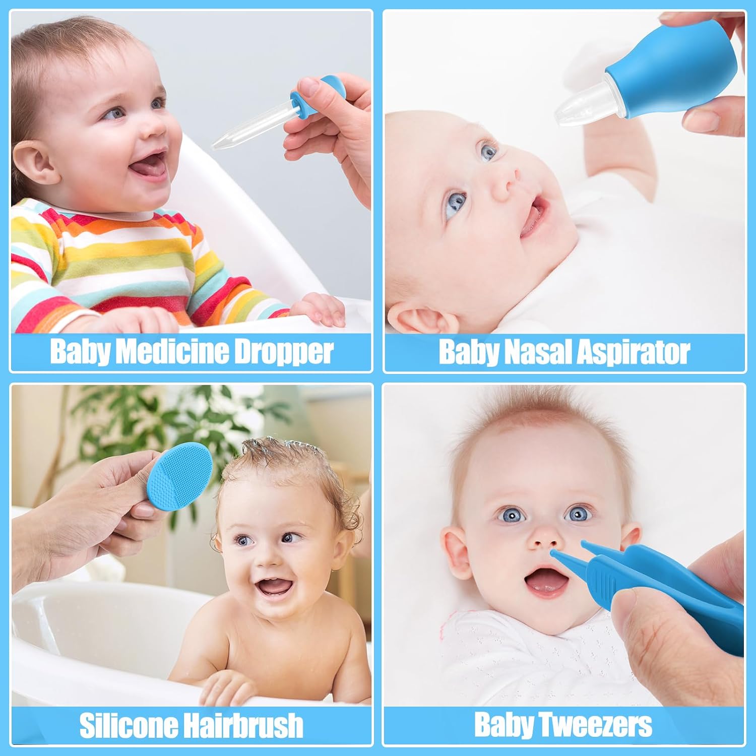 - 【Baby Health Essentials Kit】24 in 1 baby grooming kit includes a baby hair brush and comb, baby nail file, baby nail clippers, silicone brush, baby tongue cleaner, medicine dropper, baby nail scissors, silicone tooth cleaner, baby nasal aspirator, baby tweezers, measuring spoon, etc. Meeting baby's daily needs—The best baby necessities/stuff for newborns.
