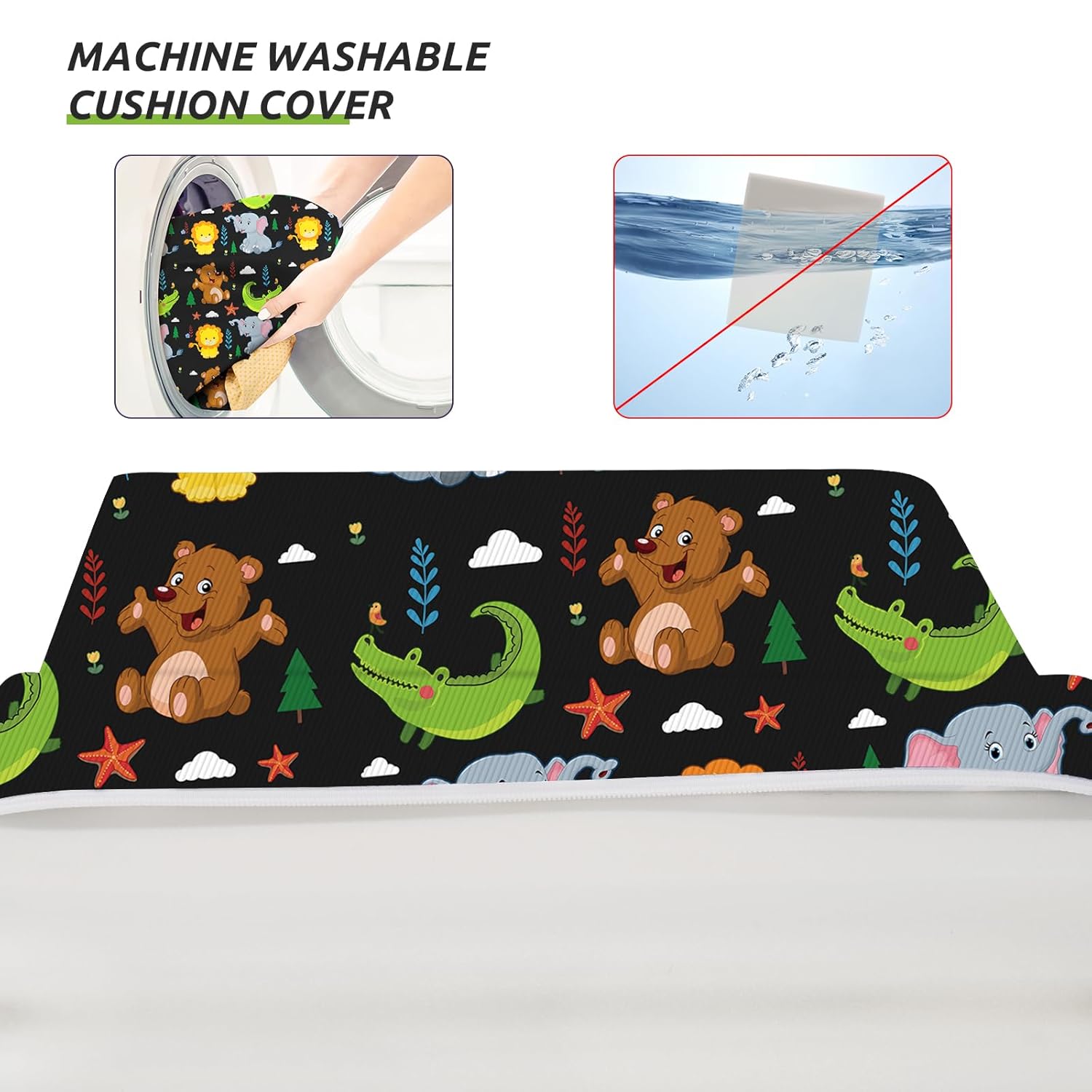 - ATTRACTIVE PATTERN: This toddler booster seat for dining table adopts an interesting animal pattern. Different kinds of animal patterns are able to attract children's eyes, let them quickly like the booster cushion that can help them increase their height
