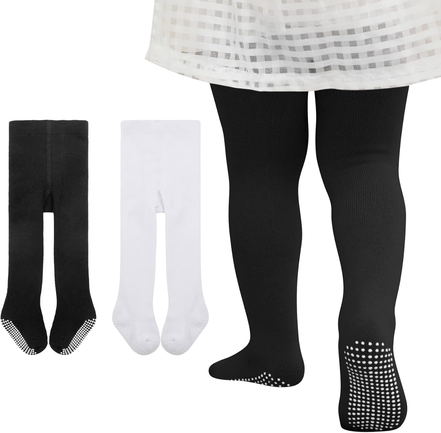 Zando Baby Girls Tights Cozy Cotton Infant Non Slip Grip Leggings Toddler Solid Knit Pantyhose Warm Newborn Stockings