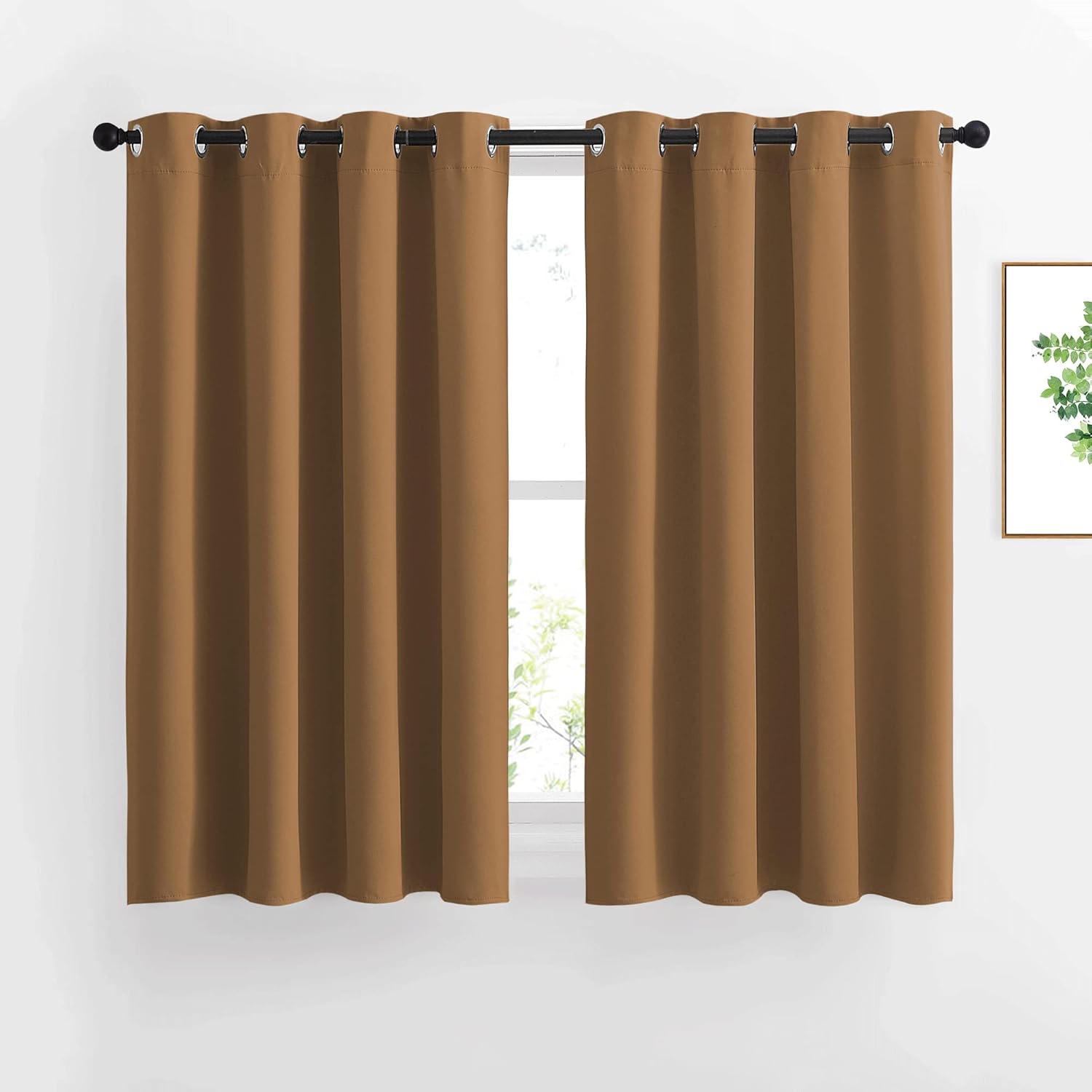 NICETOWN Kitchen Window Curtains Over Sink - Grommet Blackout Solid Vertical Small Curtains & Drapes Noise Reducing for Laundry, Gold Brown, W52 x L45, 2 Panels