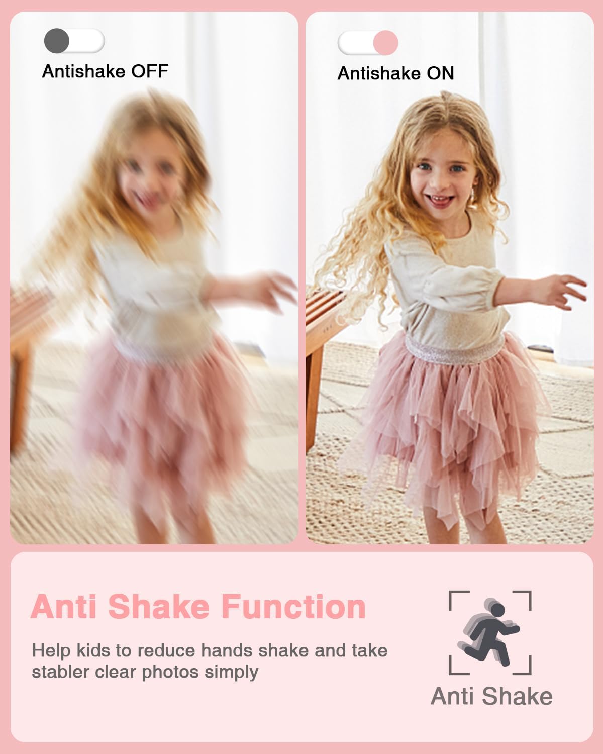 - MEANINGFUL GIFT - This pink digital camera for kids is equipped with a high-level CMOS Sensor and anti-shake function, which helps to capture vivid clear 44MP Images and record stable smooth FHD 1080P resolution videos. It's a meaningful Christmas or birthday gift camera for kids to cultivate their interest in photography, experience the lovely life, and leave funny memorable moments with family or friends.
