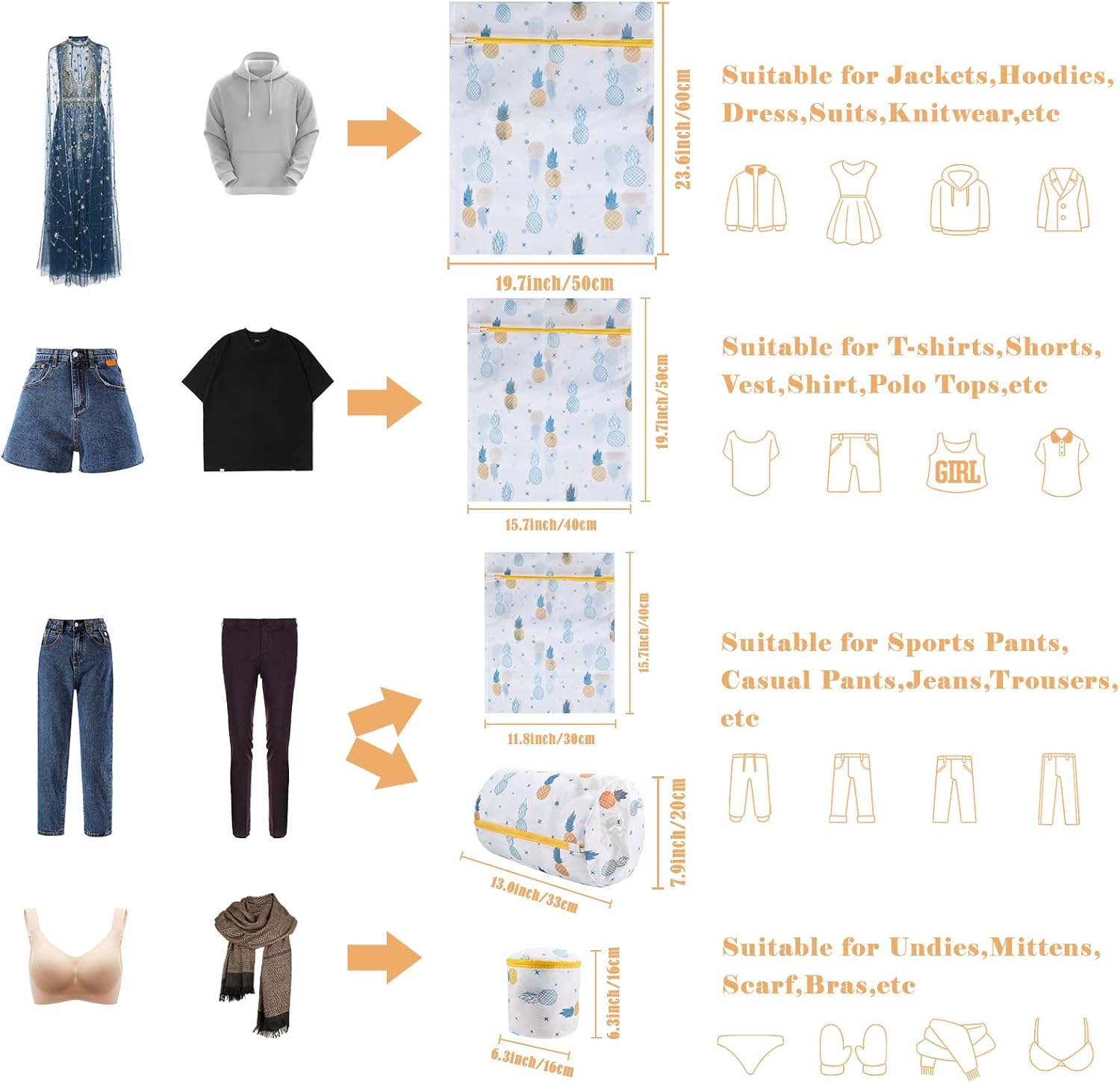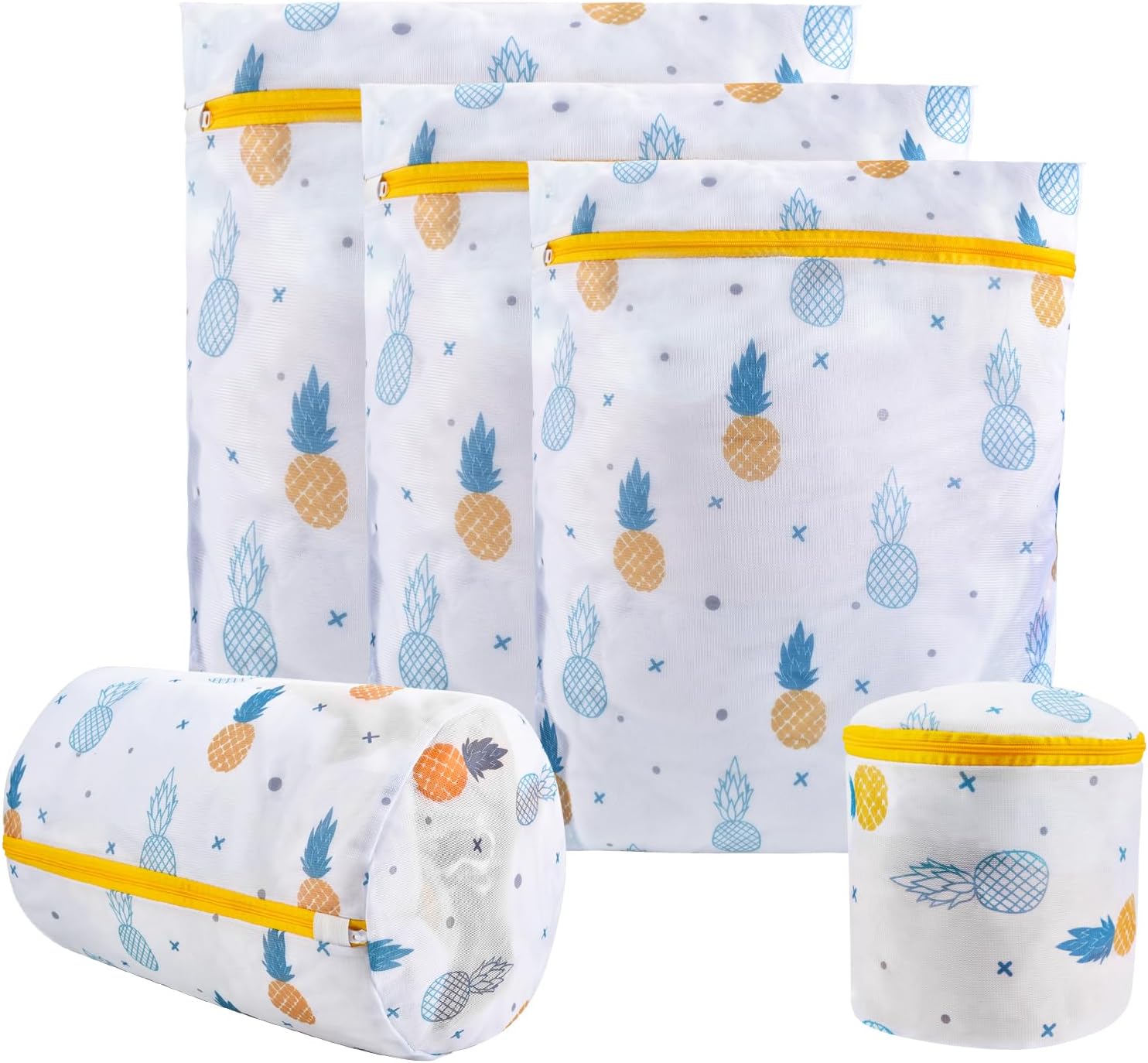 Mesh Laundry Bag, Durable Laundry Bags with Premium Zipper, 5-Piece Washing Machine Wash Bags for Delicates Blouse, Hosiery, Baby Clothes, Travel Organization Bag (Pineapple)