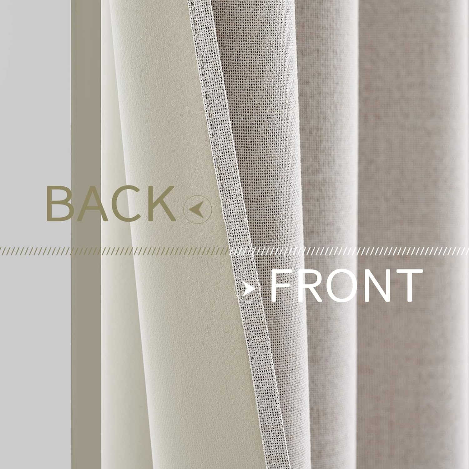 MIULEE 100% Blackout Linen Textured Curtains for Bedroom Solid Thermal Insulated Ivory Grommet Room Darkening Curtains & Drapes Luxury Decor for Living Room Nursery 52 x 96 Inch (2 Panels)