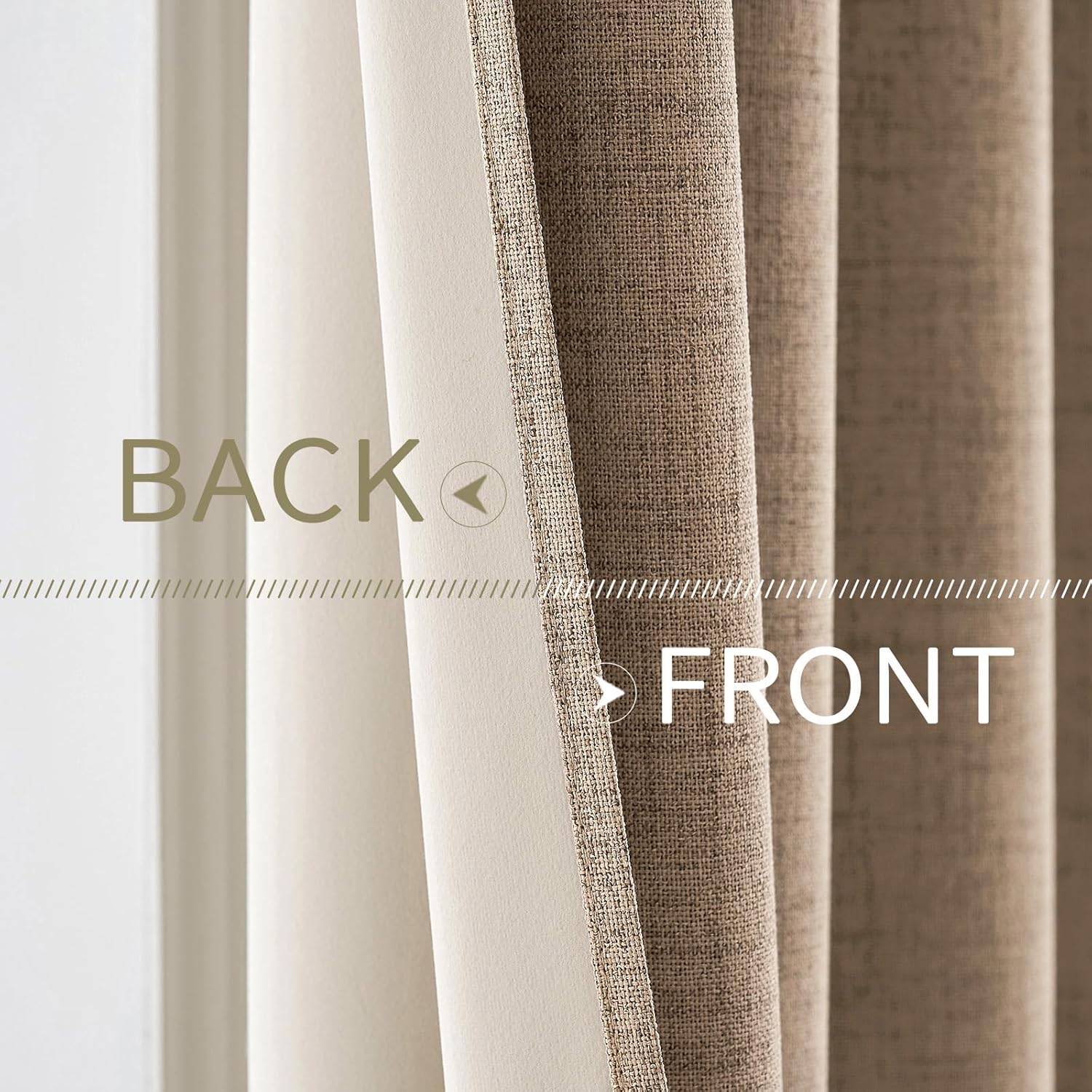 MIULEE 100% Blackout Linen Textured Curtains for Bedroom Solid Thermal Insulated Copper Brown Grommet Room Darkening Curtains & Drapes Luxury Decor for Living Room Nursery 52 x 96 Inch (2 Panels)