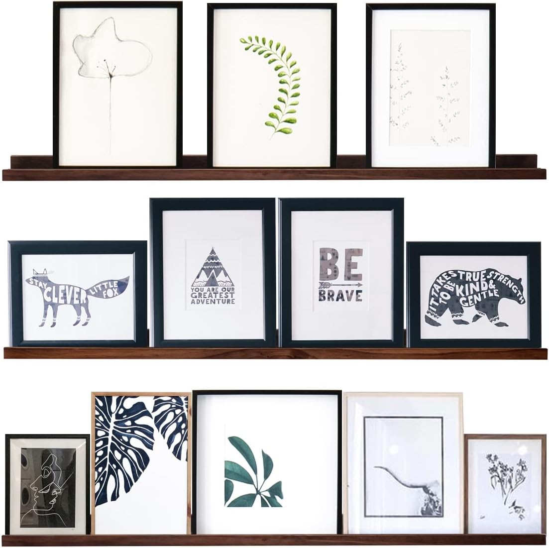 AZSKY Deep Walnut Floating Shelves Large Long Wall Storage Shelves Dark Walnut 48 Inch Wall Mount Hanging Picture Ledge Wall Decor for Bedroom Living Room Bathroom Kitchen Storage a Set of 3