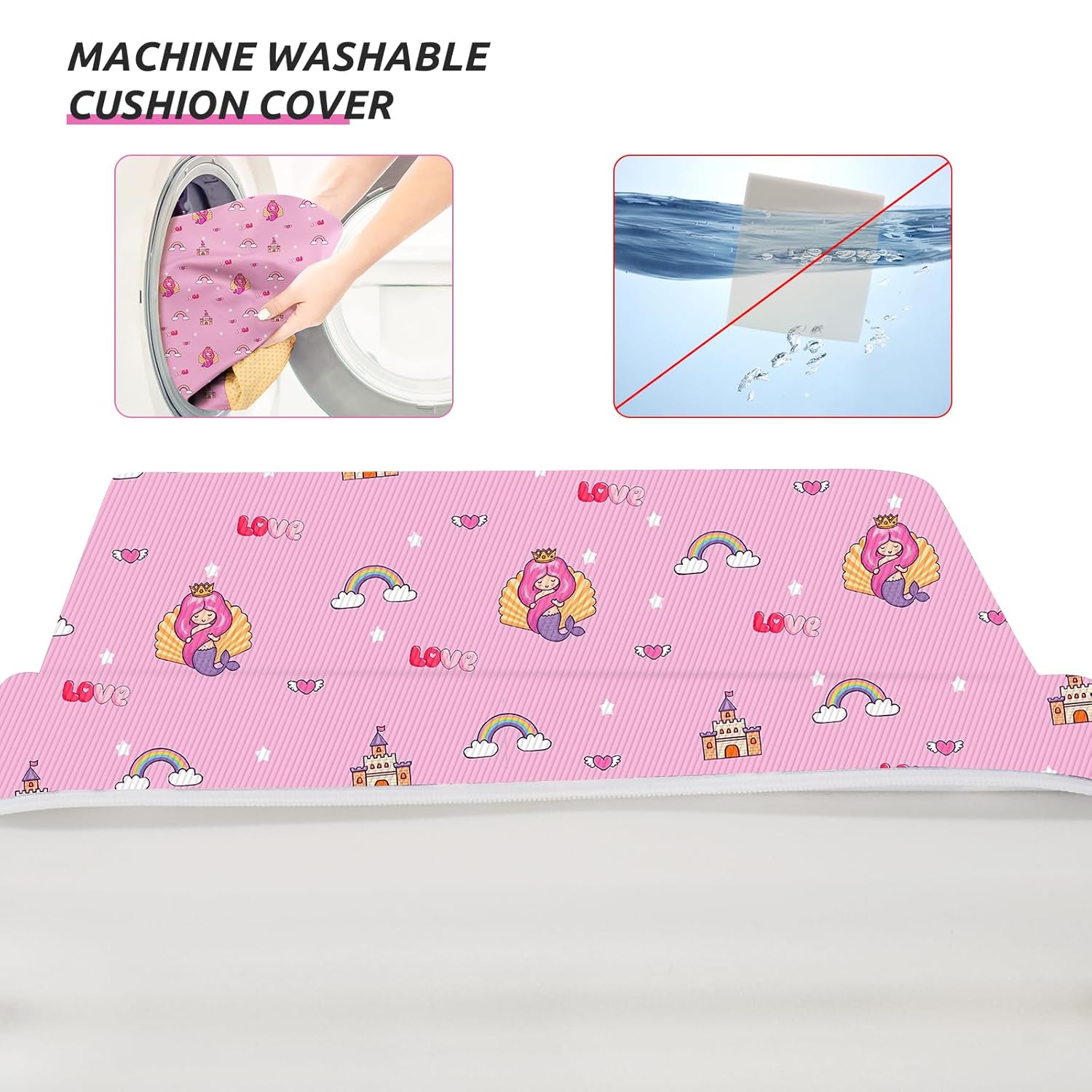 - ATTRACTIVE PATTERN: This toddler booster seat for dining table adopts an interesting animal pattern. The pink mermaid patterns are able to attract children's eyes, let them quickly like the booster cushion that can help them increase their height. The size of the booster cushion are 12.6 x 14.2 x 3.5 inches, which is suitable for most dining chairs.