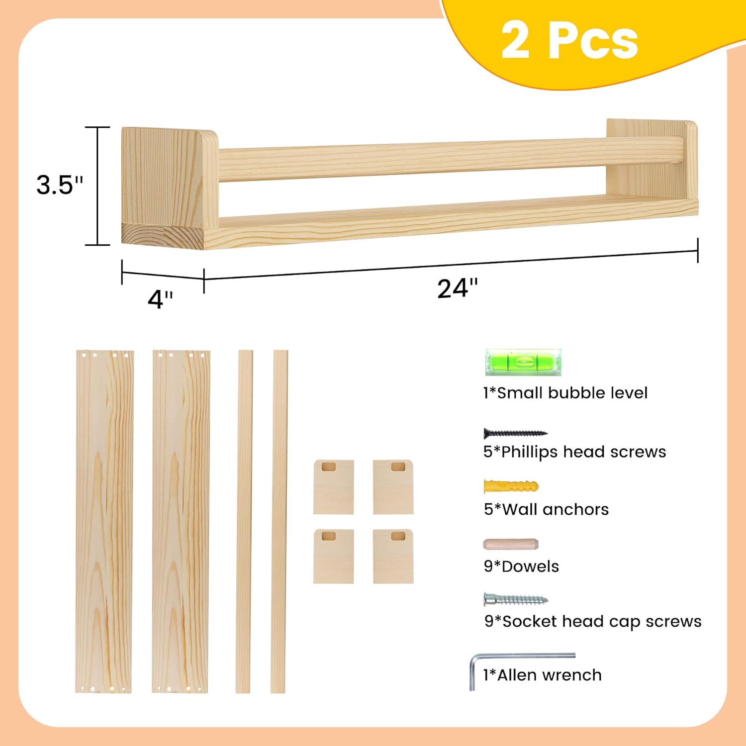 - [Experience Effortless Mounting] - Our nursery floating shelf comes with a complete hardware kit and step-by-step instructions for easy installation. Measuring 4” D x 24” W x 3.5” H, it's the perfect size for any nursery room. Enjoy effortless storage and organization with Fun Memories