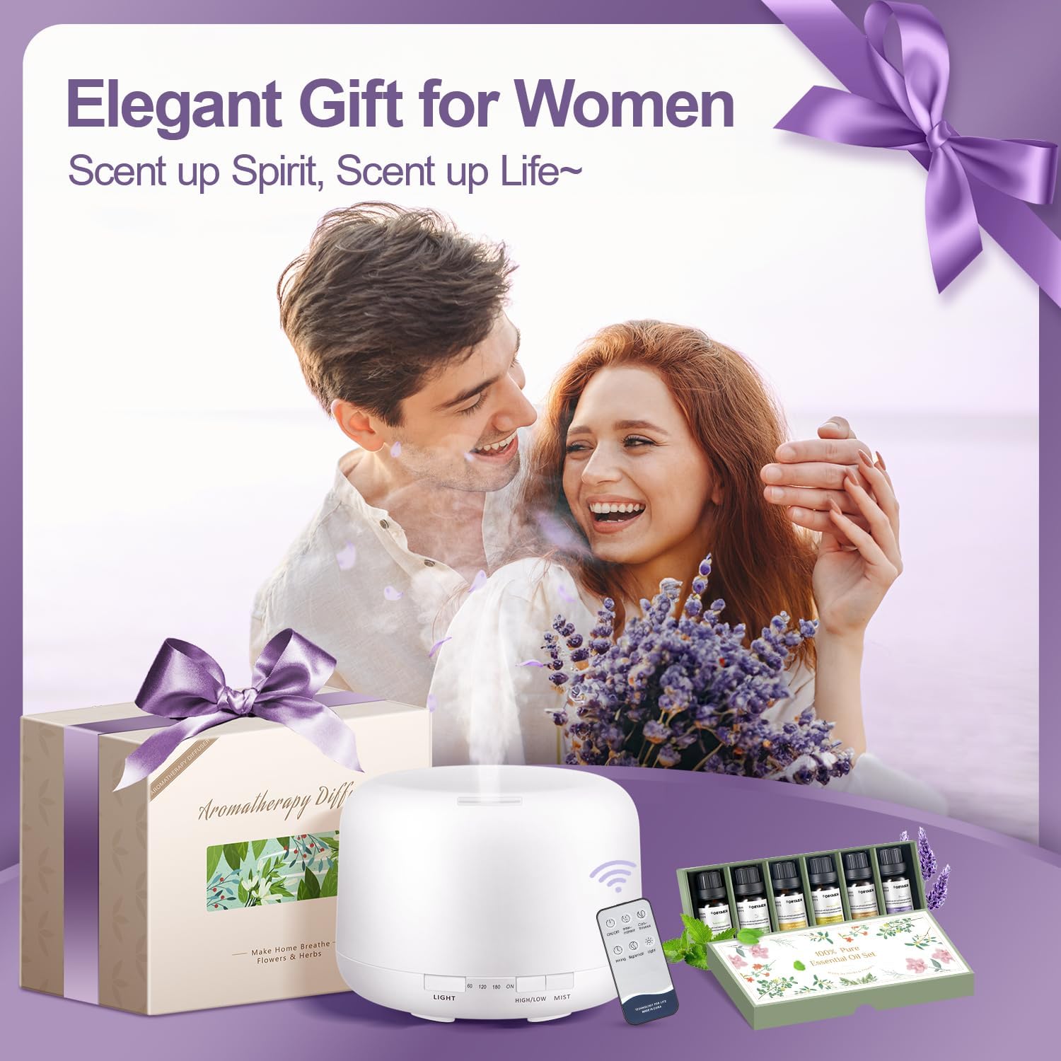 Diffusers for Essential Oils Large Room 500ML+6 Oil Set, Bluetooth Speaker+Remote+8 RGB Lights Essentail Oil Diffuser, Easy to Use & 23Db 100% Quiet Oil Diffuser Large Room, Diffusers for Home