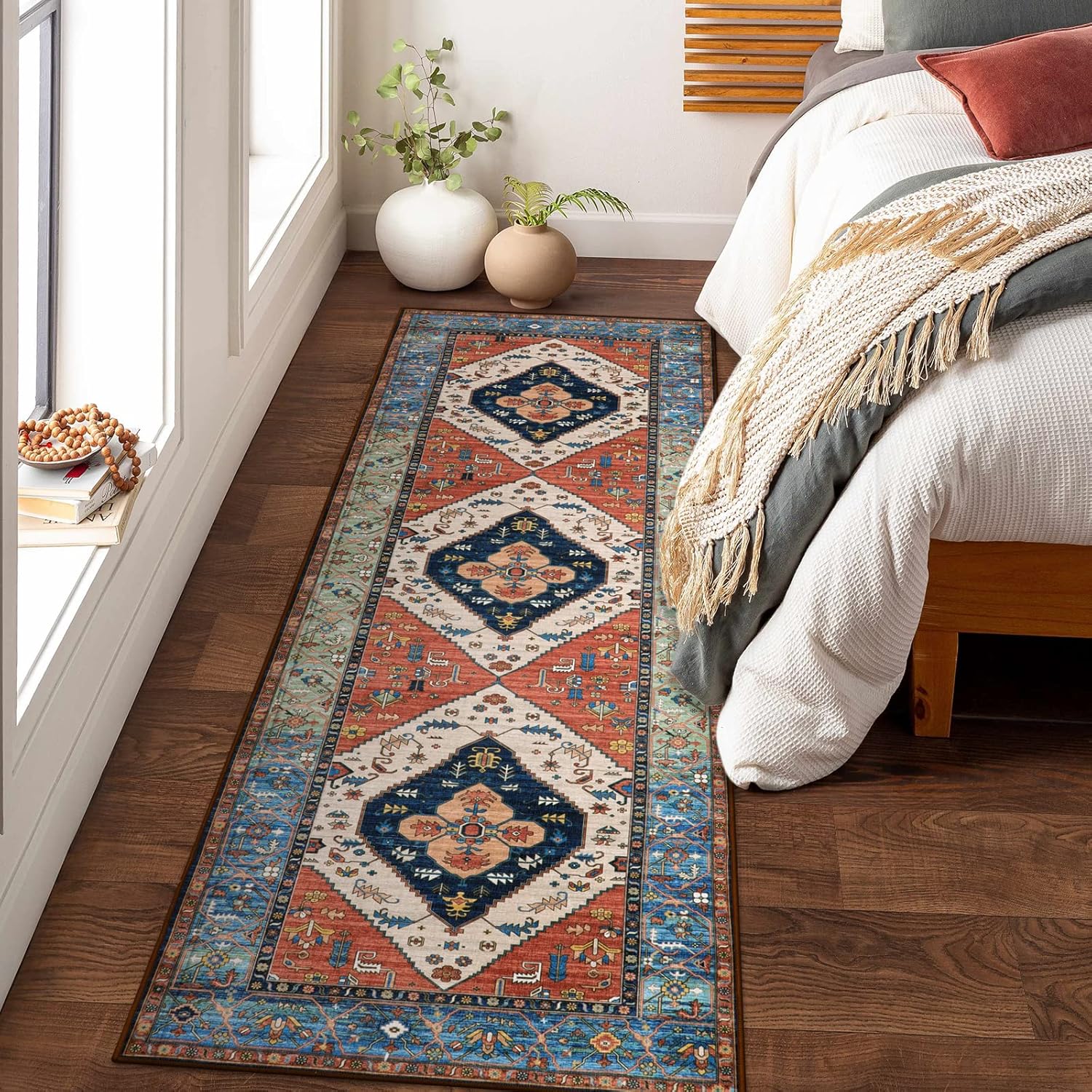 Lahome Boho Hallway Runner Rug - 2x6 Kitchen Runner Rugs Non Skid Washable Non-Slip Laundry Room Rug Throw Low-Plie Bathroom Oriental Distressed Carpet for Entrance Bedroom Living Room