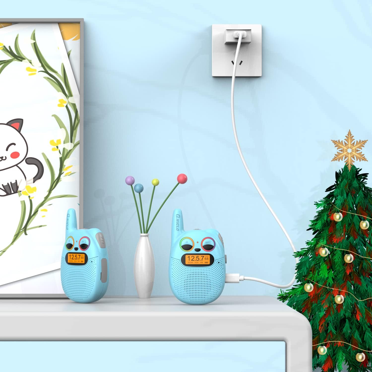 Qniglo Walkie Talkies for Kids Rechargeable 2 Pack,Christmas Birthday Gifts Toys for Age 3-12 Boys Girls, Long Range Kids Walkie-Talkie with FM Radio for Family Adventure Camping Hiking Spy Games