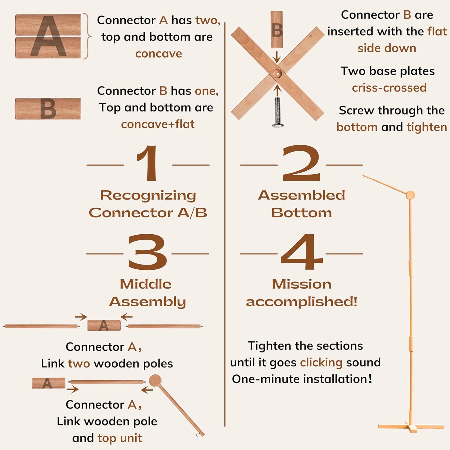 - 【European Beech Wood Only】The choice of 10,000+ mothers around the world, we import the best quality natural beech from Europe, all floor-standing mobile arm are made of safe water-based paint, designed by a professional baby product design team, to ensure that every product makes mothers rest assured and babies happy.