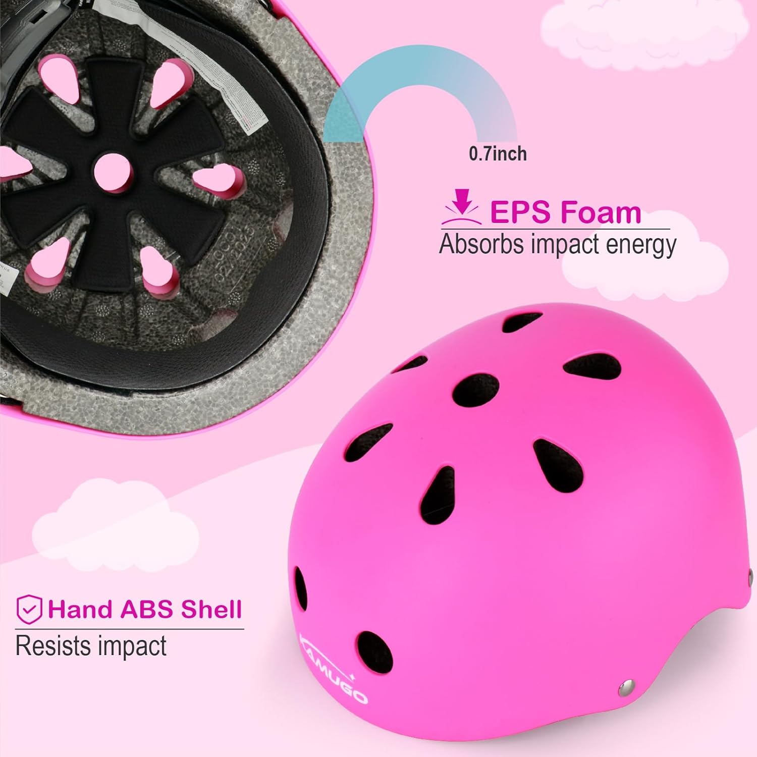 - PREMIUM PROTECTION FOR YOUR KIDS: Suitable for children and toddlers with helmet size: 48-54 cm / 18.9- 21.3 inch.Contain 1 adjustable KAMUGO helmet, 2 knee pads, 2 elbow pads, 2 wrist guards, bring your kids all-round safety protection.