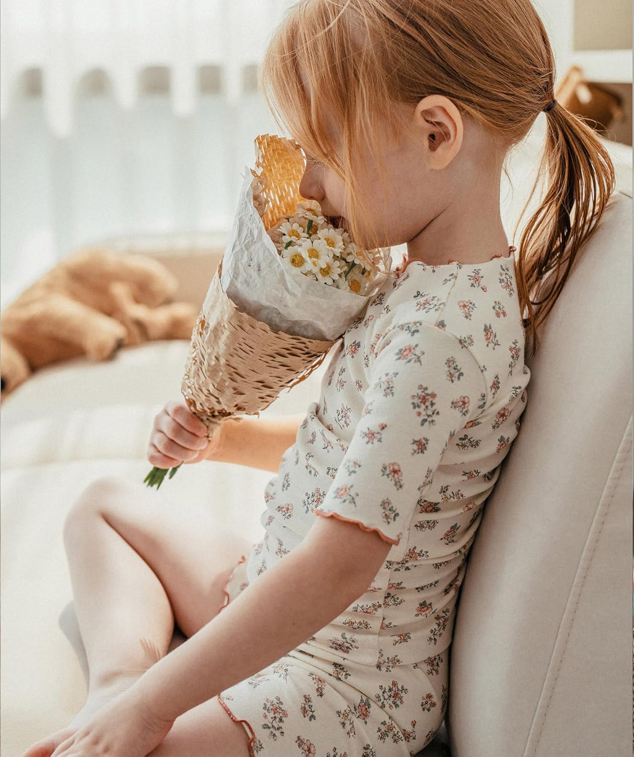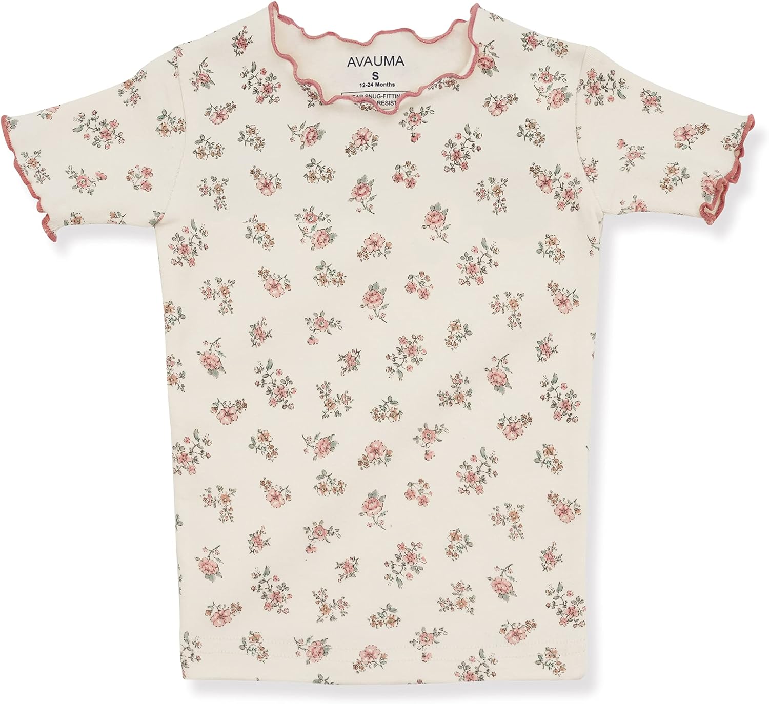 AVAUMA Baby Boy Girl Pajama Set 6M-7T Kids Cute Toddler Snug fit Flower Pattern Design Pjs Cotton Sleepwear Ruffled Shirring