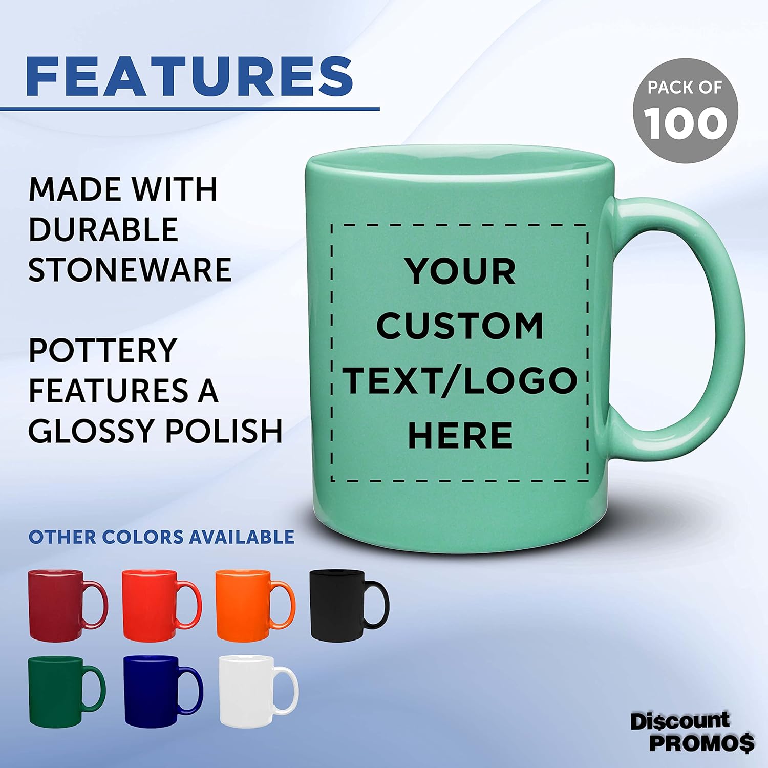 Custom Ceramic Coffee Mugs 11 oz. Set of 100, Personalized Bulk Pack - Coffee cup set, Iced coffee cup, Gaming mug - Teal
