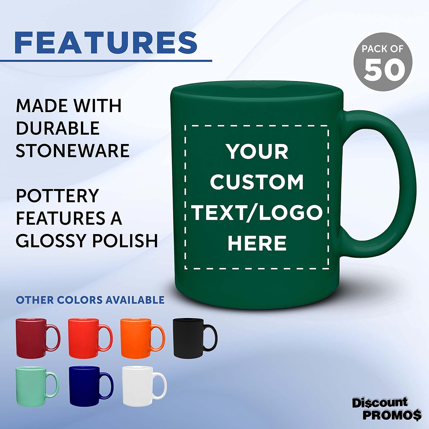 Custom Ceramic Coffee Mugs 11 oz. Set of 50, Personalized Bulk Pack - Coffee cup set, Iced coffee cup, Gaming mug - Green