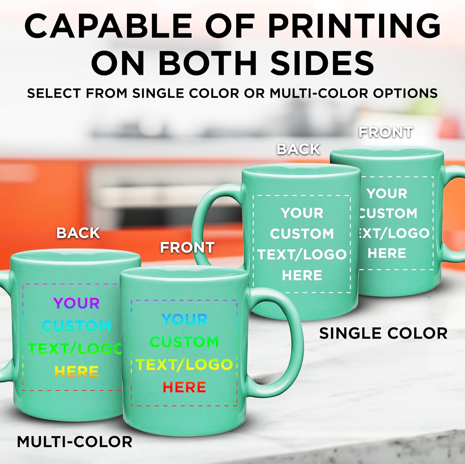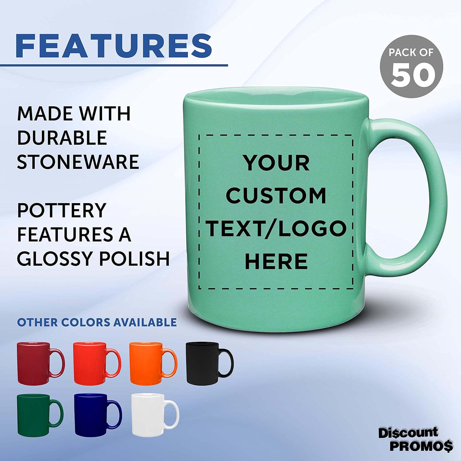 Custom Ceramic Coffee Mugs 11 oz. Set of 50, Personalized Bulk Pack - Coffee cup set, Iced coffee cup, Gaming mug - Teal
