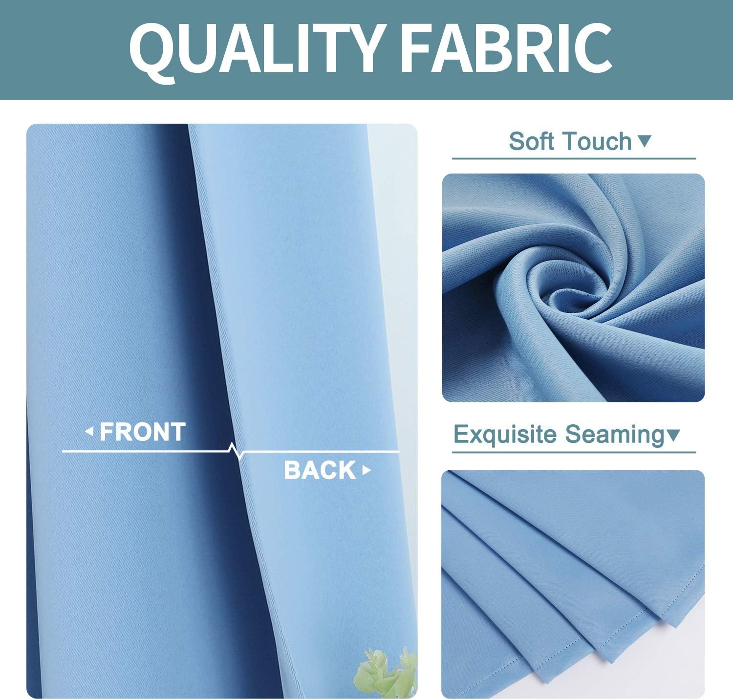 - QUALITY FABRIC: These thick living room curtains work well in noise reducing and privacy protection. Same solid color on both sides. The material feels soft with no chemical smell, safe for kids room and nursery room.