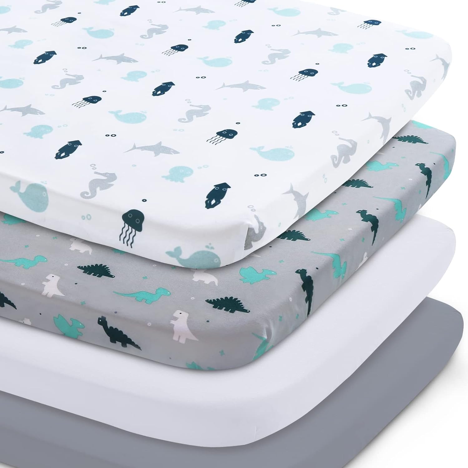 Bassinet Sheet 4 Pack for Baby Boys or Girls, Bassinet Sheets Ultra Soft Universal Fit for Most Rectangle, Oval, Hourglass Bassinet Mattress, Bassinet Sheets, Grey