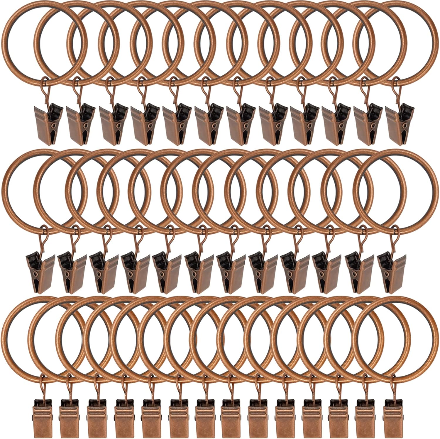 40 Pack Antique Copper Curtain Rings with Clips, Curtain Hooks Hangers Clip Rings for Hanging Drapes Bows Hat, Drapery Rings 1.5 in I D, Fits up to 1.2 in Diameter Curtain Rod.