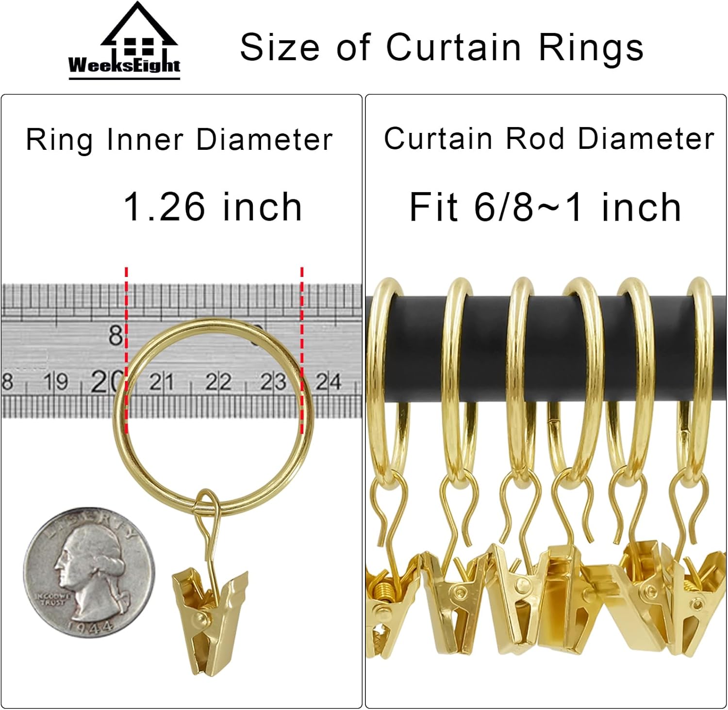- 【Please Note】This rings fits 1 in or smaller diameter drapery rod, The clip is a little tight when it is opened for the first time, and it will be easy to open it when it is used again.
