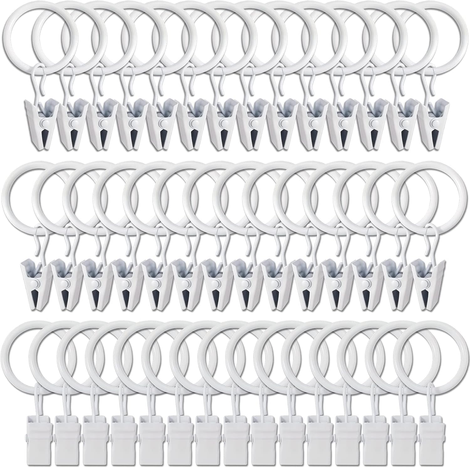 44 Pack White Curtain Rings with Clips, Curtain Hooks Hangers Clip Rings for Hanging Drapes Bows Hat, Drapery Rings 1 in I D, Fits up to 5/8 in Diameter Curtain Rod.