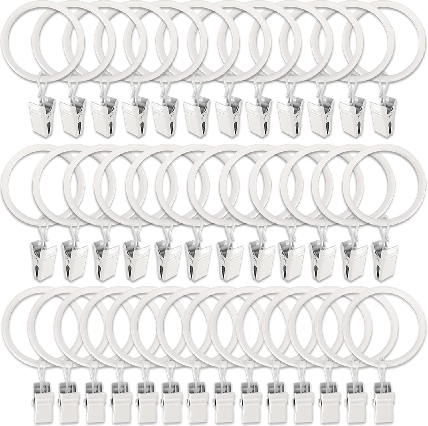 40 Pack White Curtain Rings with Clips, Curtain Hooks Hangers Clip Rings for Hanging Drapes Bows Hat, Drapery Rings 1.5 in I D, Fits up to 1.2 in Diameter Curtain Rod.