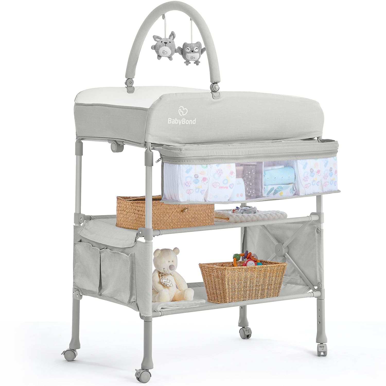 - HEIGHT ADJUSTMENT & MOBILE--The BabyBond baby changing table has upgraded 3 heights adjustment ranging from 33 inches to 35 inches, accommodating adults ranging from 4.8-6 feet tall, eliminating the need to bend or kneel during diaper changes. In addition, the portable changing table has four removable universal wheels with safety locks, making it easily movable from one room to another