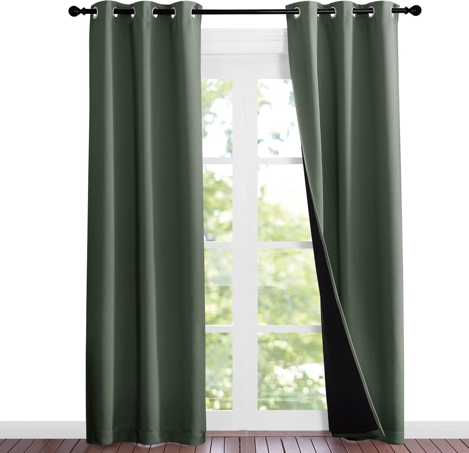 NICETOWN Dark Mallard Blackout Curtains 84 inches Long, Full Light Blocking Drapes with Black Liner for Nursery, Noise Reducing Thermal Insulated Draperies for Doorway (2 Pieces, 37" Wide Each Panel)