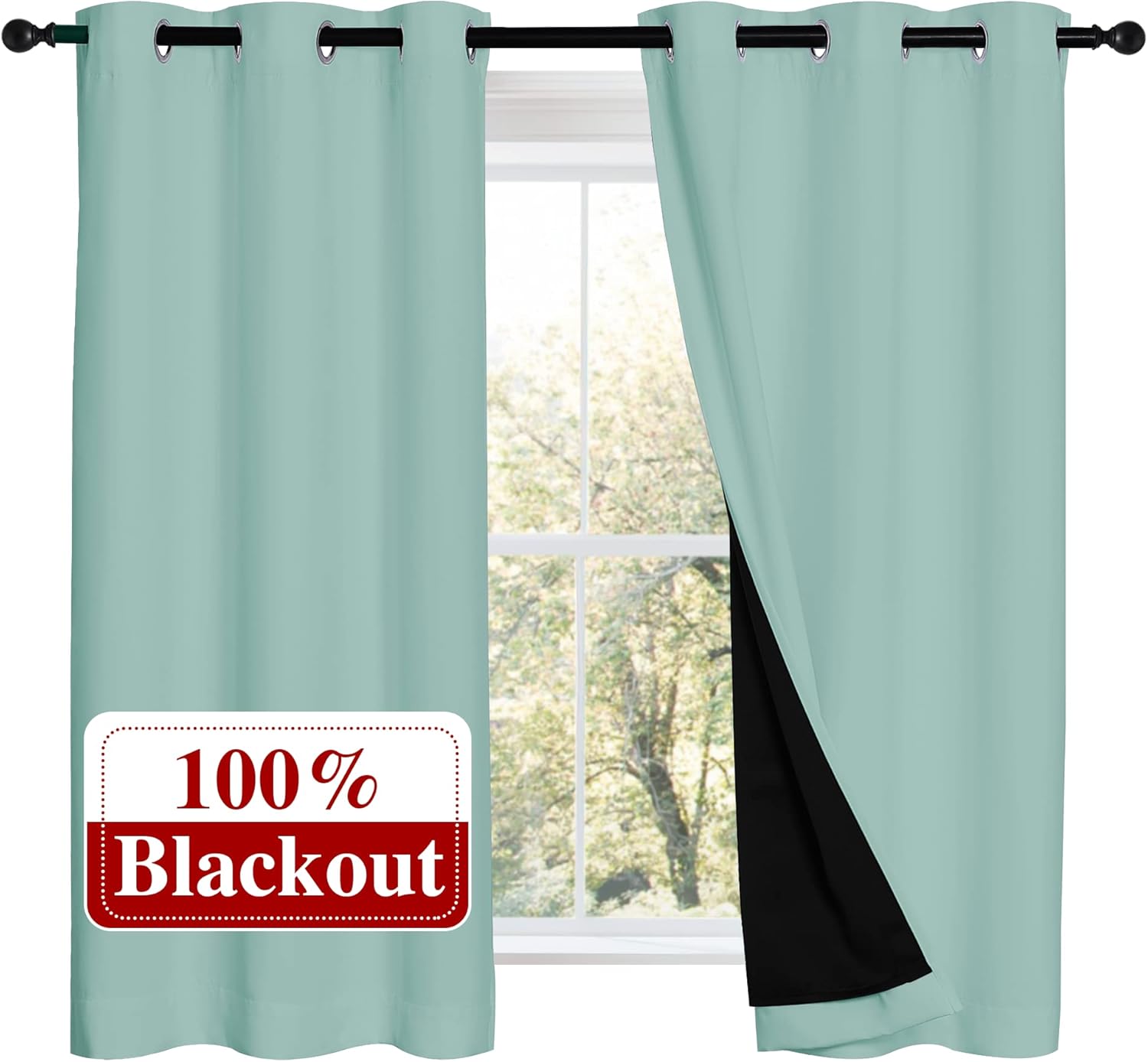 NICETOWN 100% Blackout Curtains 54 inches Long, Double-Deck Completely Blackout Window Treatment Thermal Insulated Lined Drapes for Small Window (Aqua Blue, 1 Pair, 42 inches Width Each Panel)